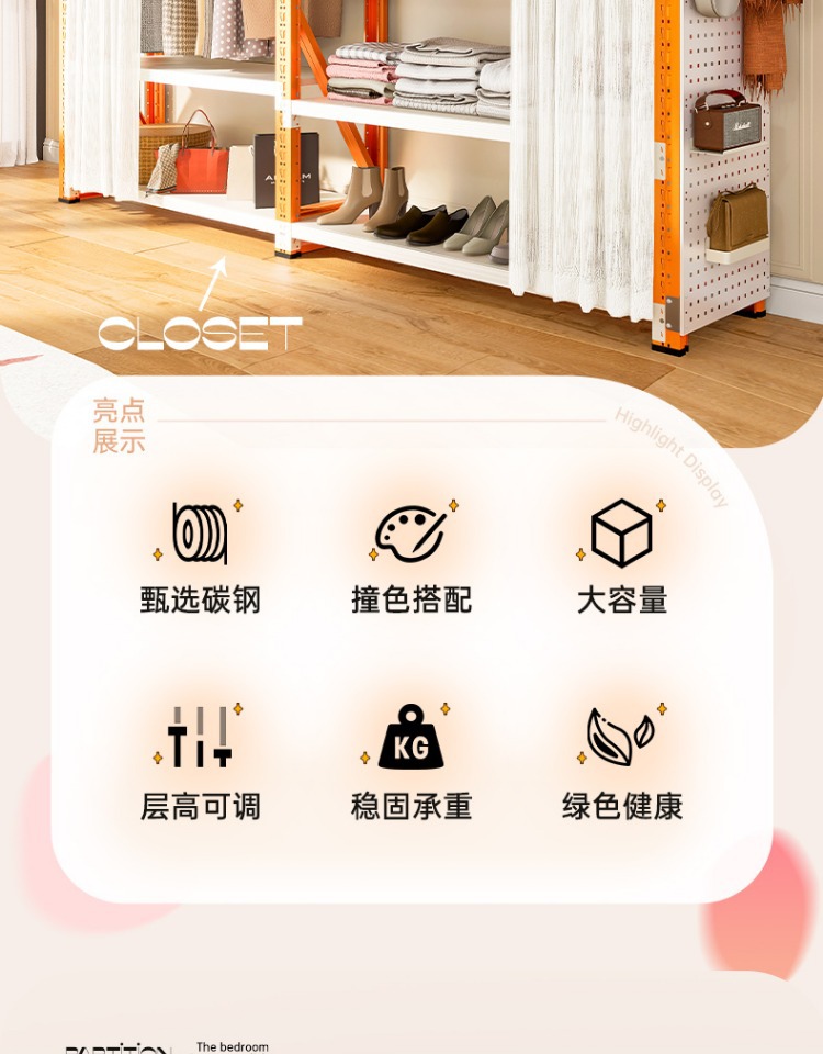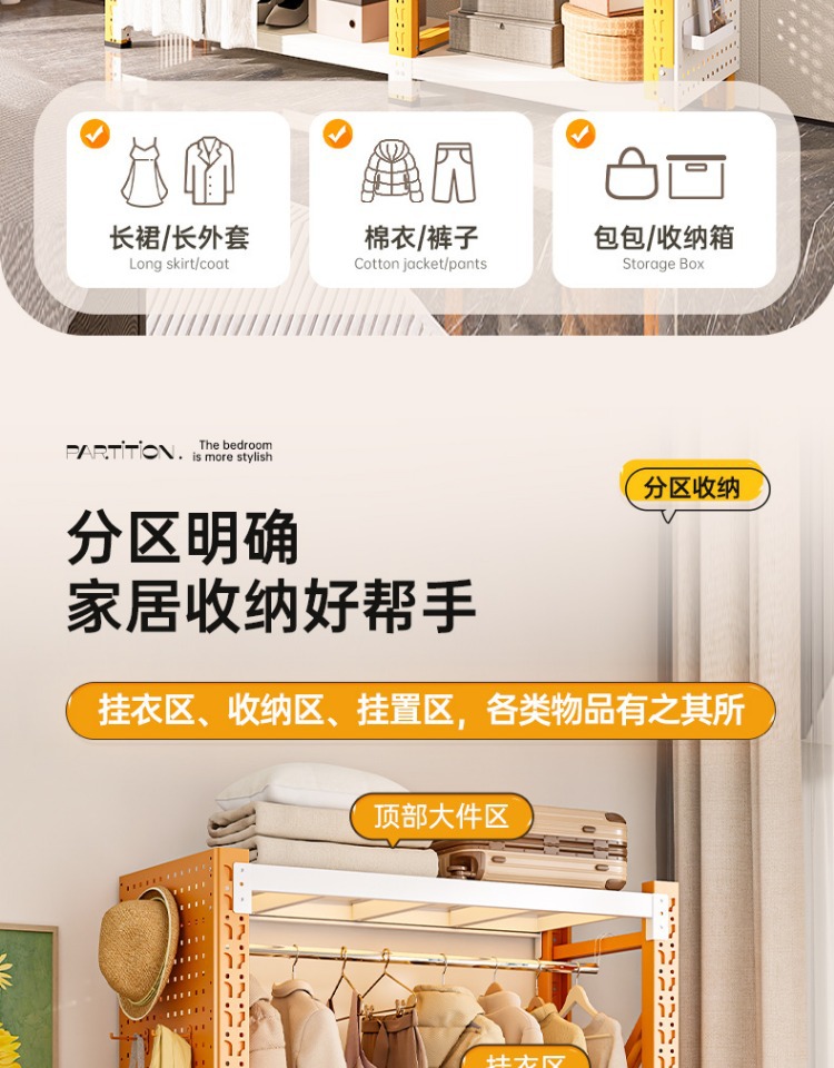 선반 옷장 가정용 오픈 코트 랙 렌탈 룸 간단한 조립 걸이 멀티 레이어 무료 조립 옷장스토어 가기