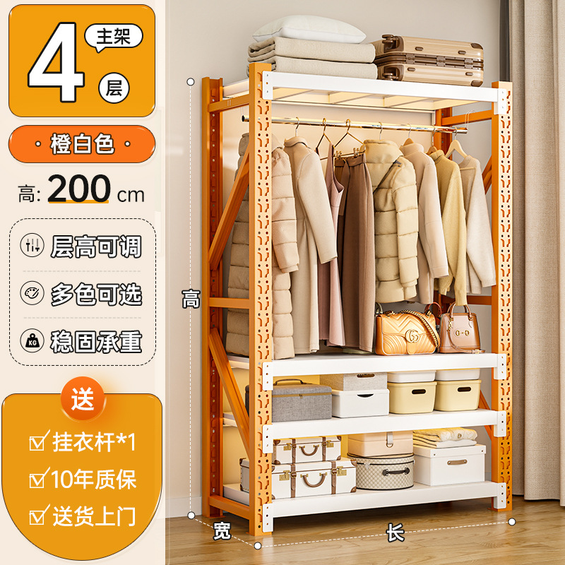 • 주황색과 흰색 3단 - 길이 120, 깊이 40, 높이 200cm [옷걸이봉 포함]