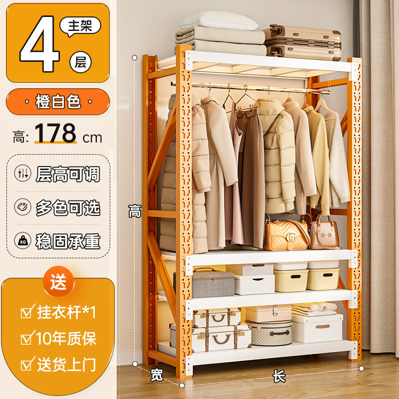 • 주황색과 흰색 4겹 - 길이 120, 깊이 40, 높이 178cm [옷걸이봉 포함]