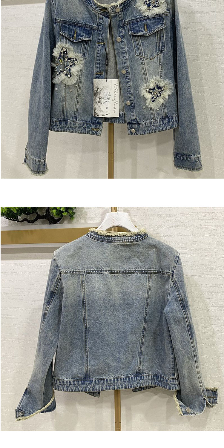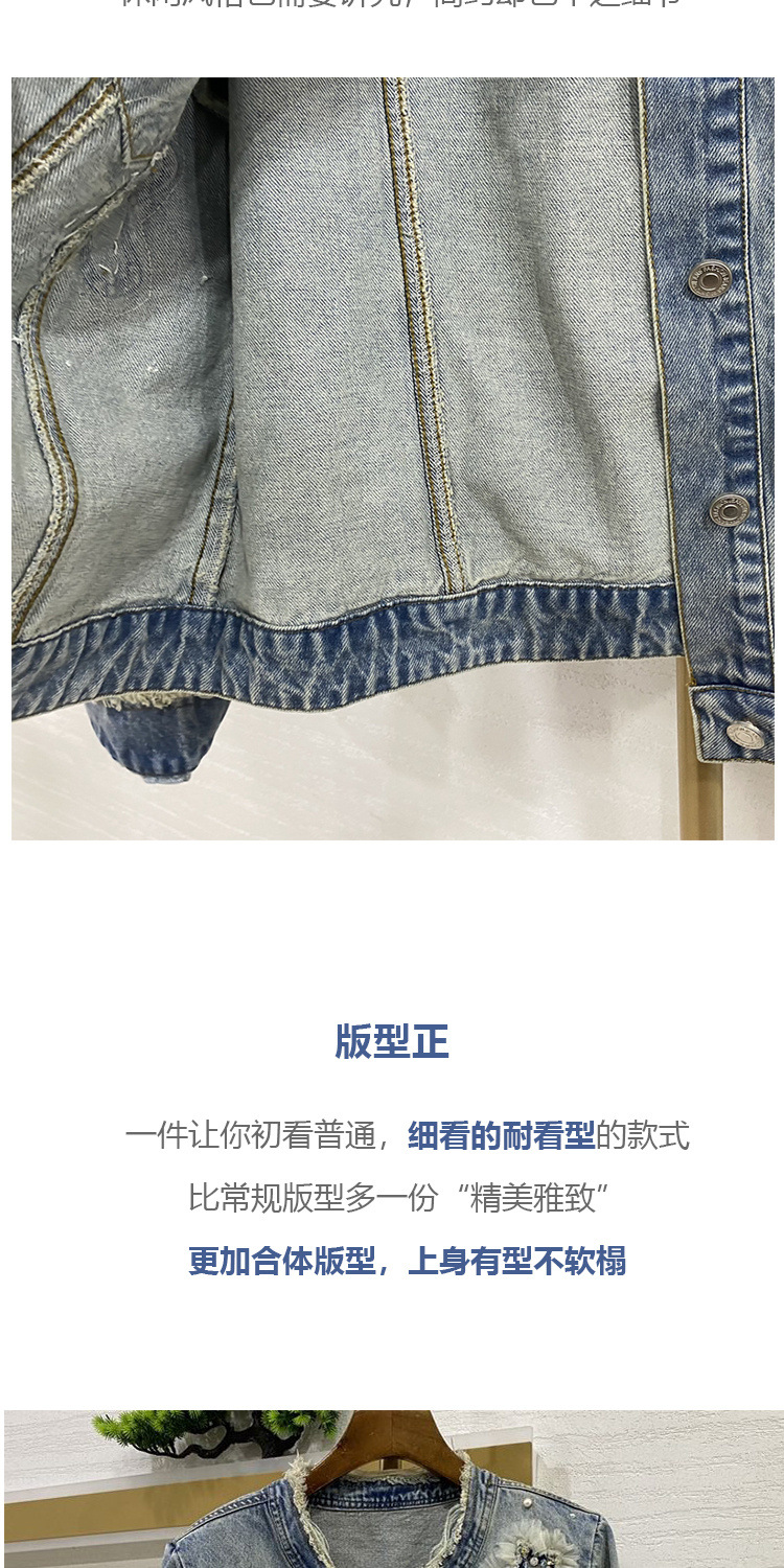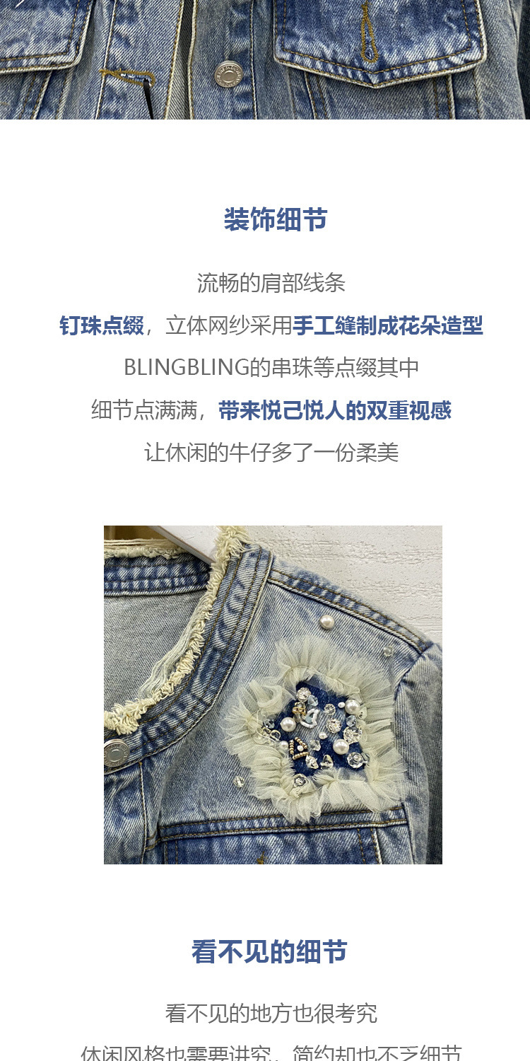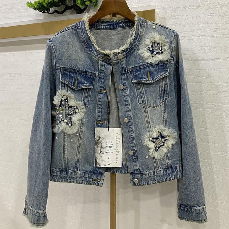 디자인 감각 버 데님 코트 여성의 2025 년 봄과 가을 새로운 중공업 비즈 하이 엔드 청바지 여성용 재킷스토어 가기