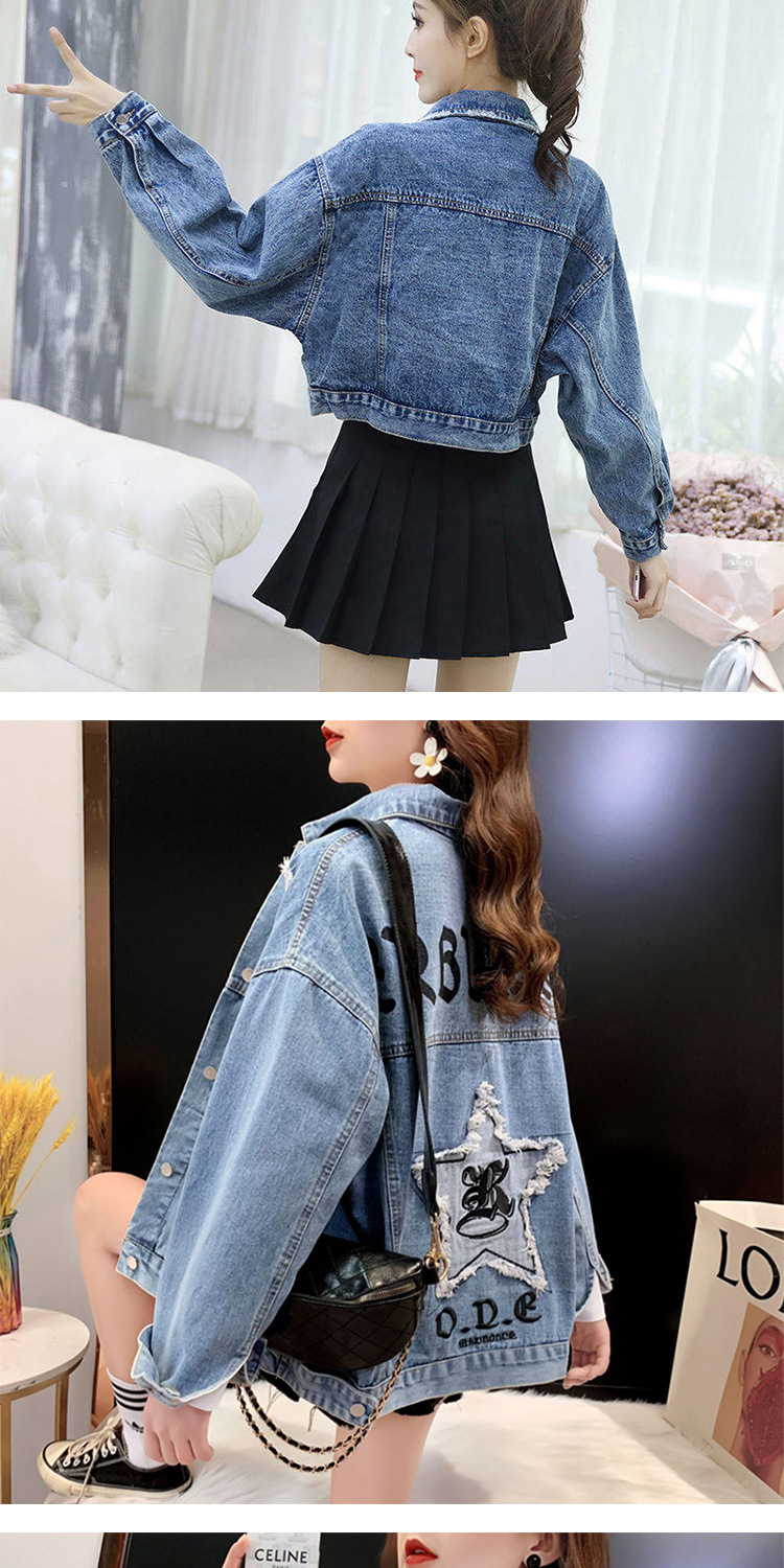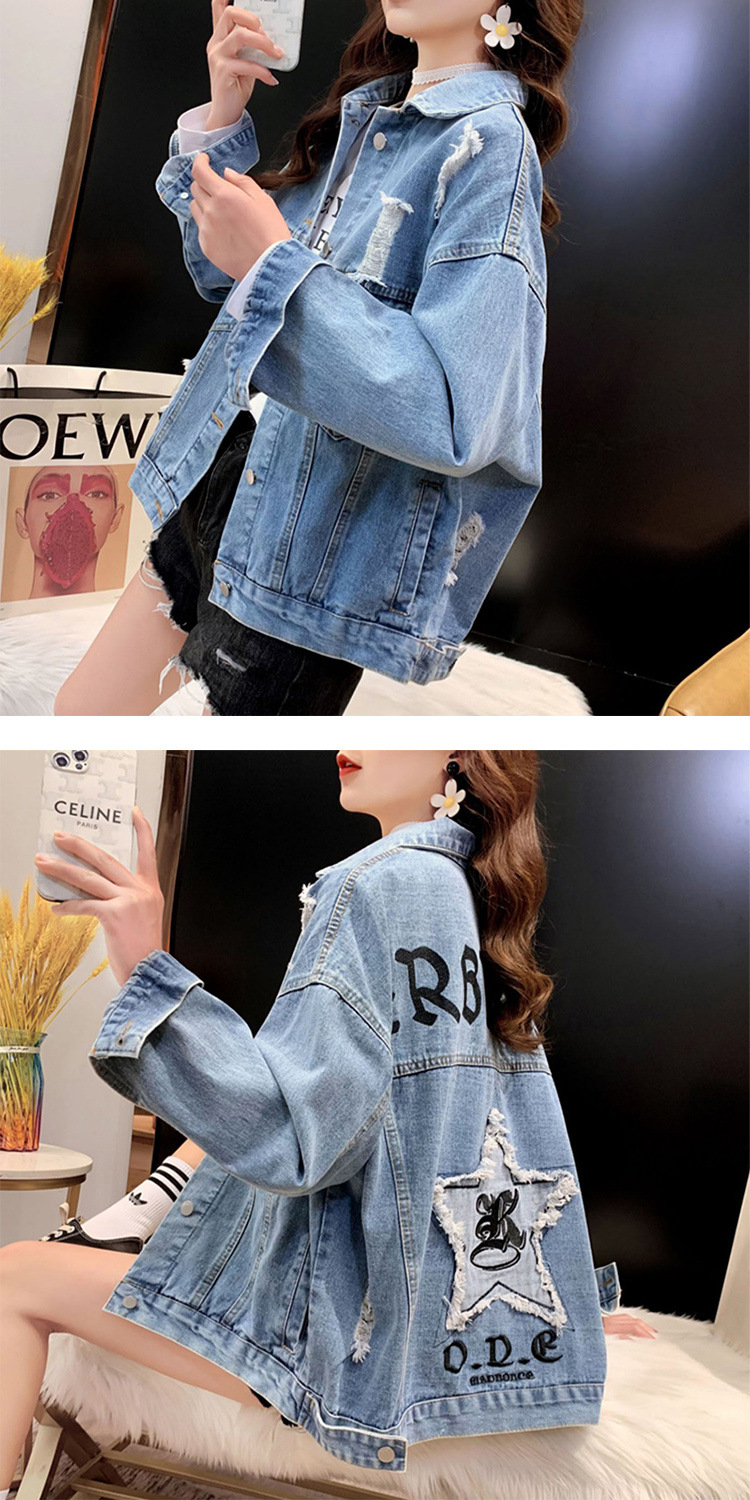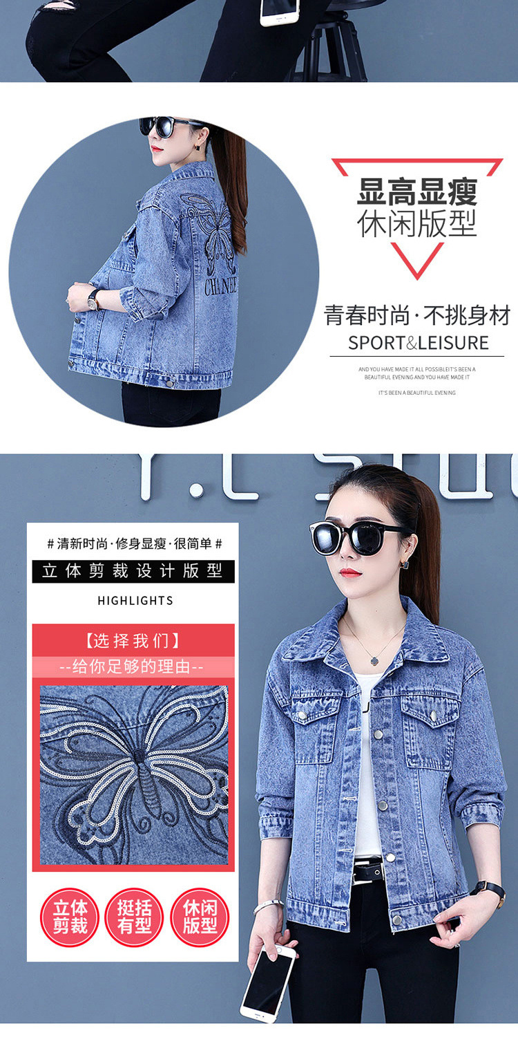 디자인 감각 버 데님 코트 여성의 2025 년 봄과 가을 새로운 중공업 비즈 하이 엔드 청바지 여성용 재킷스토어 가기