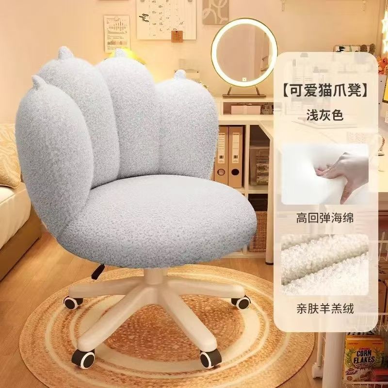 크림 스타일 양가죽 회전 가능한 메이크업 의자 작은 아파트 침실 네일 드레싱 의자 고양이 클로 의자 현대 단순스토어 가기