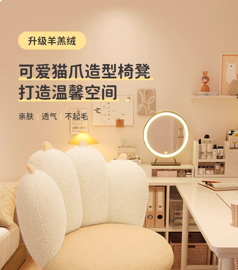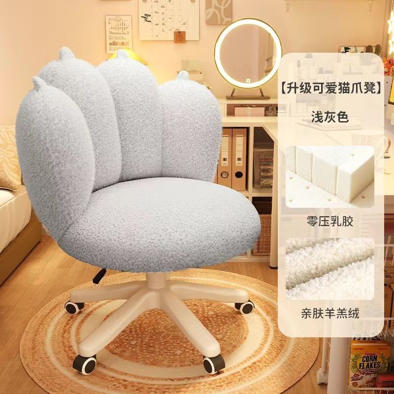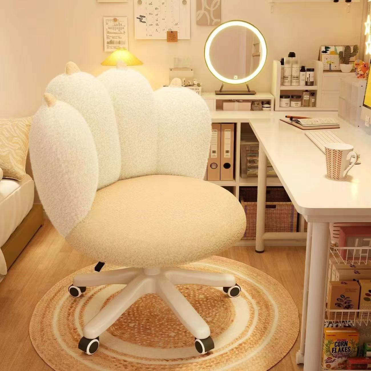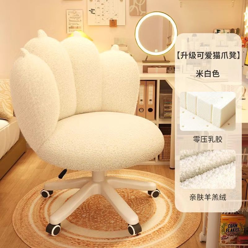 크림 스타일 양가죽 회전 가능한 메이크업 의자 작은 아파트 침실 네일 드레싱 의자 고양이 클로 의자 현대 단순