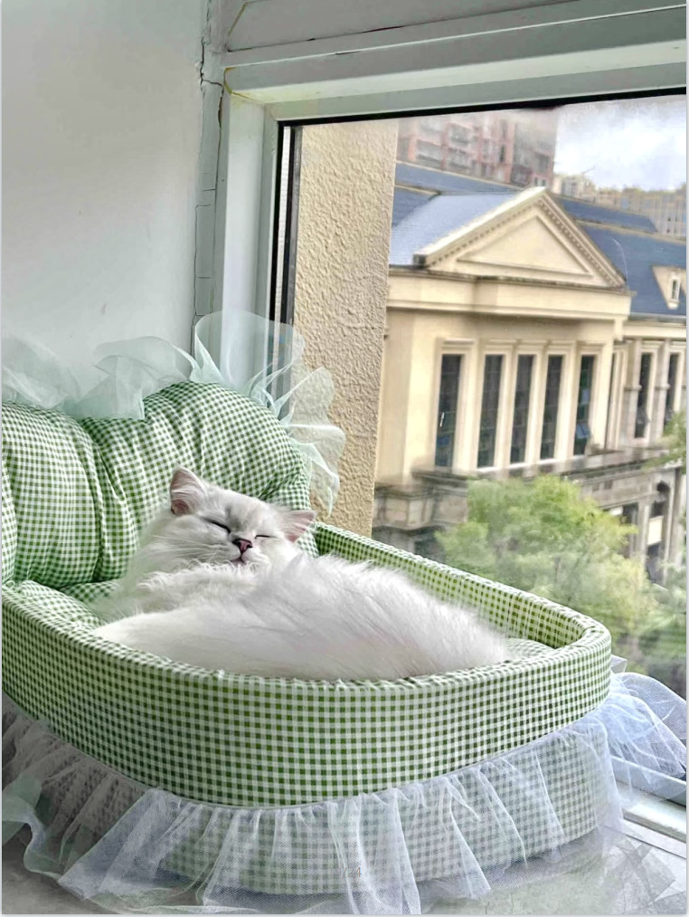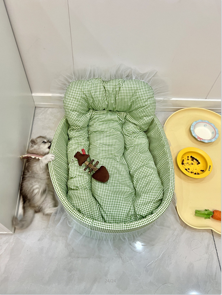 • 녹색 체크무늬 애완동물 둥지 [둥지 바닥 + 매트 + 레이스 포함]