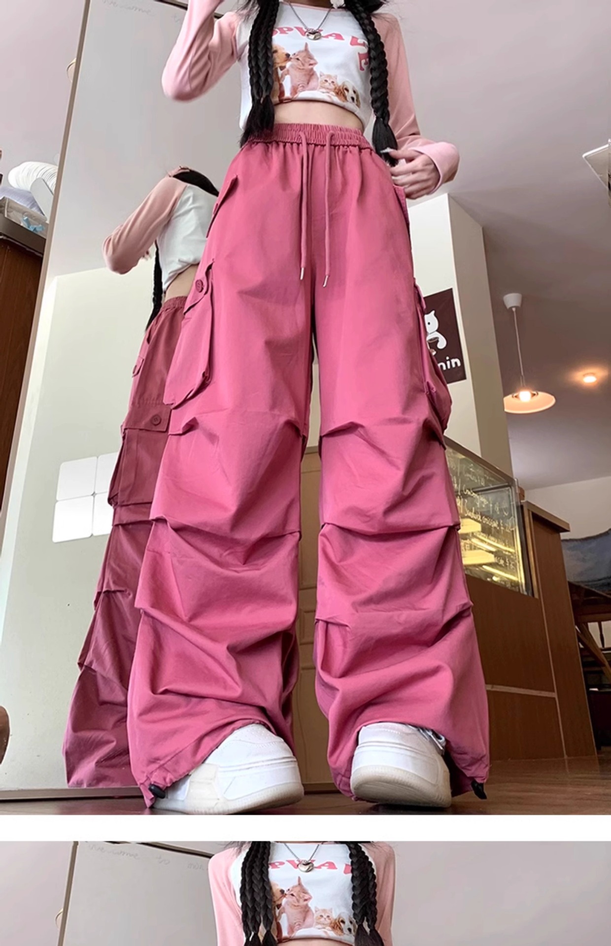 빈티지 바이브 작업복 캐주얼 바지 어린이 야외 등산 스포츠 대형 포켓 디자인 센스 스트레이트 낙하산 바지스토어 가기