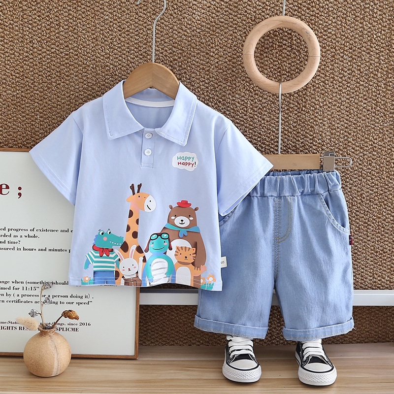 소년 여름 반팔 패션 세트 새로운 패션 서양식 어린이 동물 그룹 짧은 소매 투피스 직접 판매스토어 가기