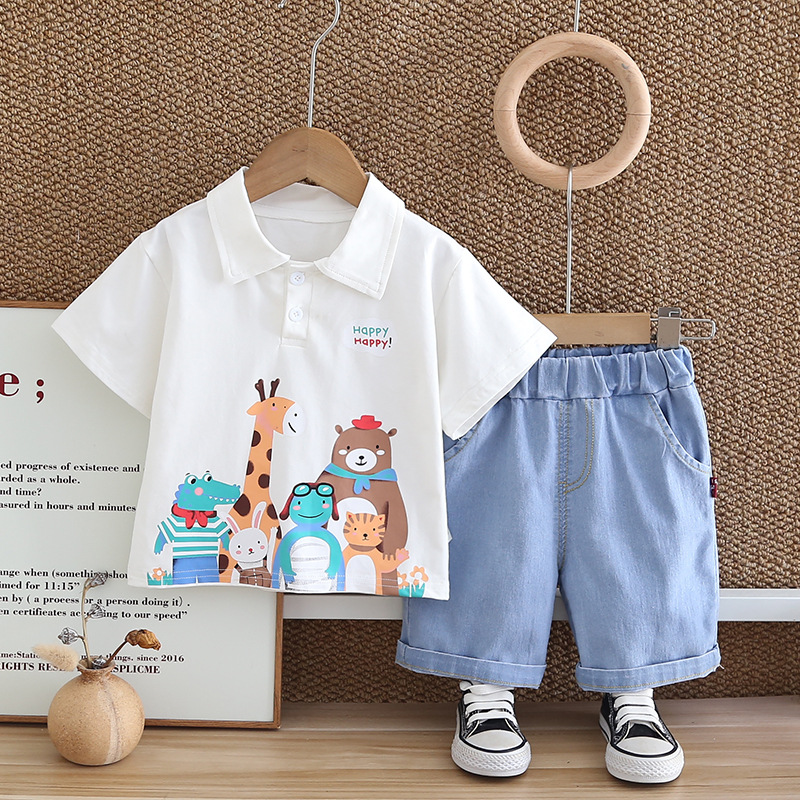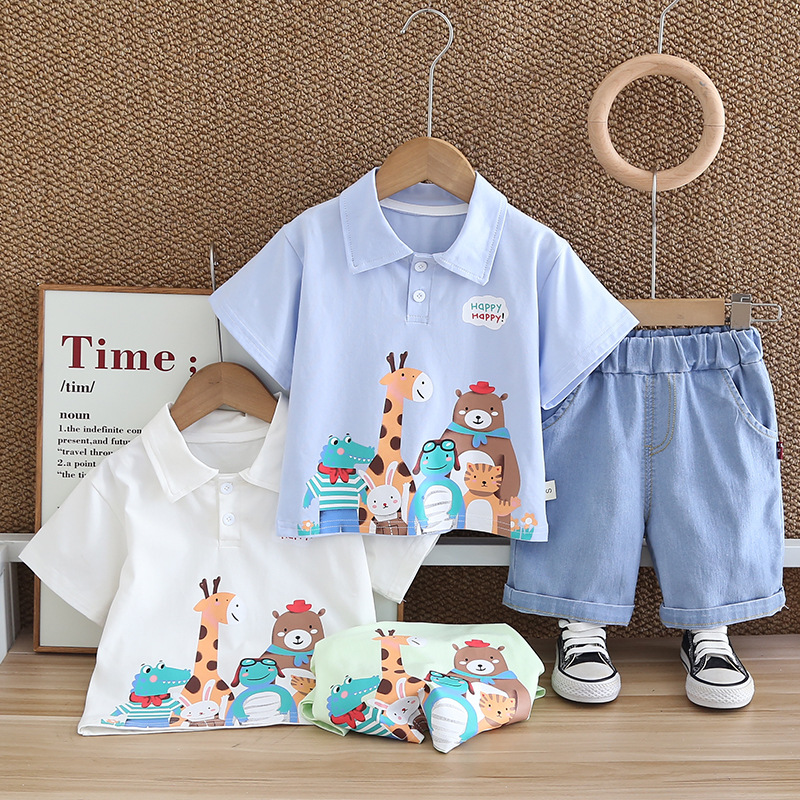 소년 여름 반팔 패션 세트 새로운 패션 서양식 어린이 동물 그룹 짧은 소매 투피스 직접 판매