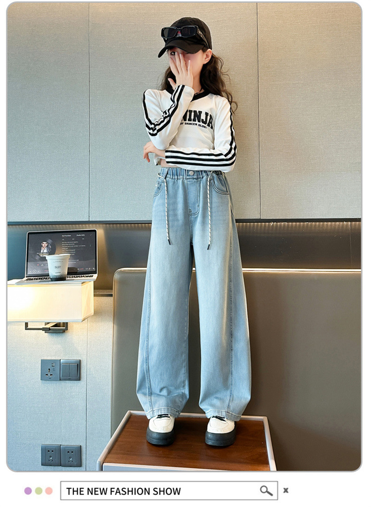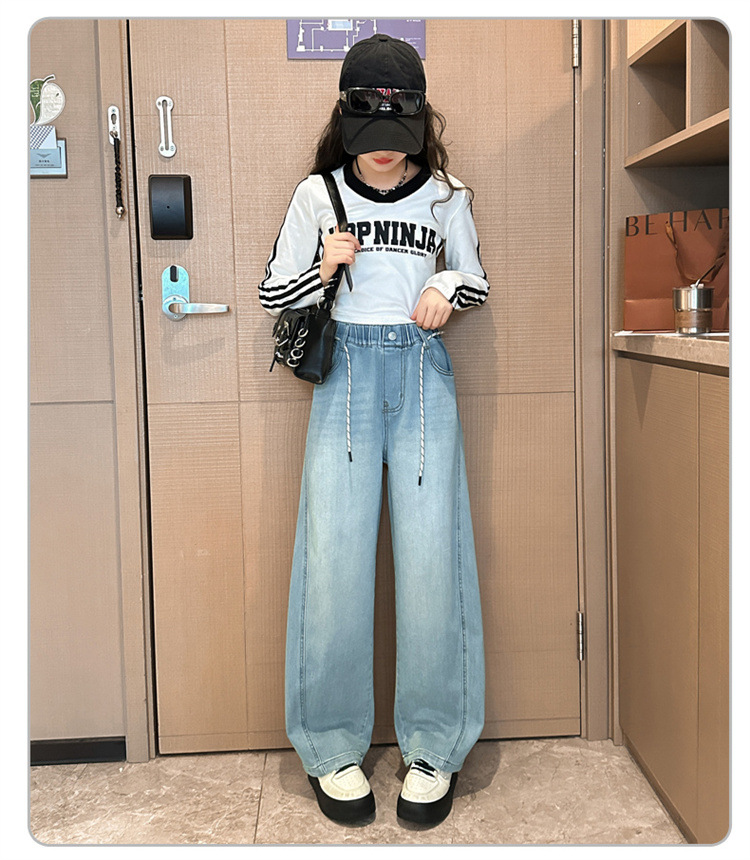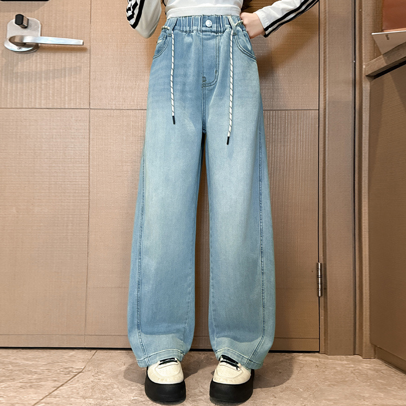 어린이 청바지 2025 가을 새 소녀의 느슨한 바지 큰 어린이 서양식 봄과 가을 캐주얼 마체테 바지스토어 가기