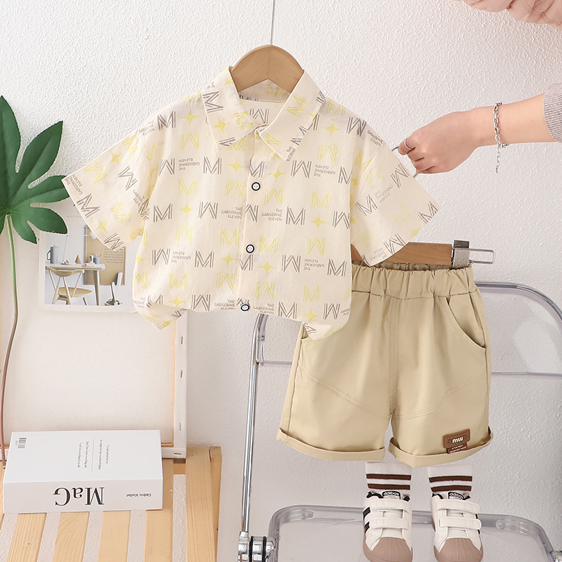 소년 여름 반팔 유행 세트 새로운 유행 세련된 어린이 전체 인쇄 편지 옷깃 반팔 투피스 세트스토어 가기