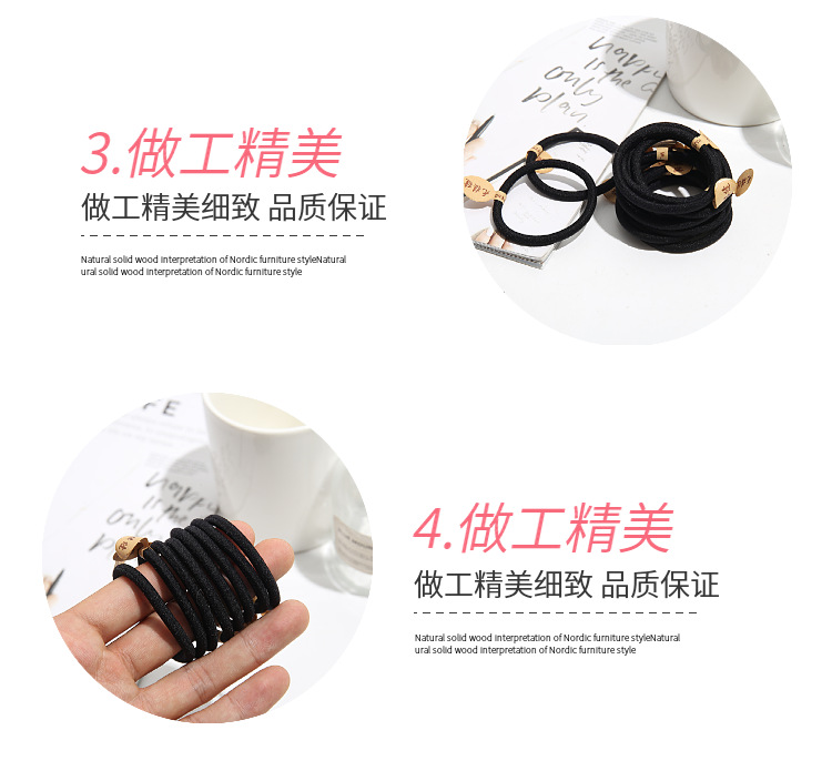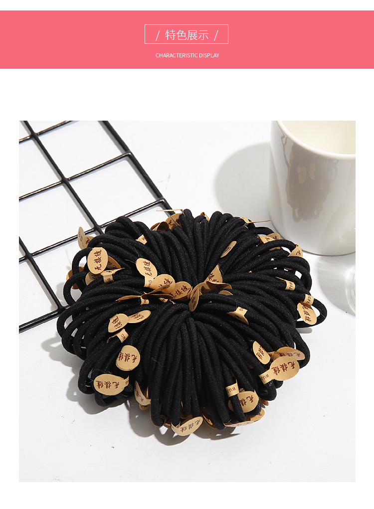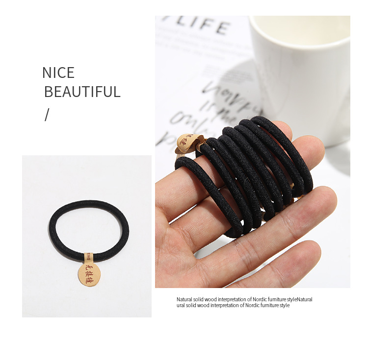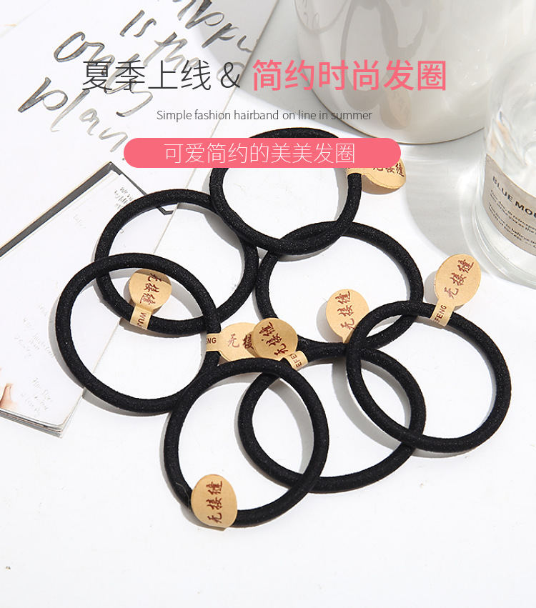 고탄성 헤어 로프 0.6 두꺼운 실 헤드 로프 도매 헤어 액세서리의 원활한 라벨 고무 밴드 블랙 기본 헤어 링 한국어 버전