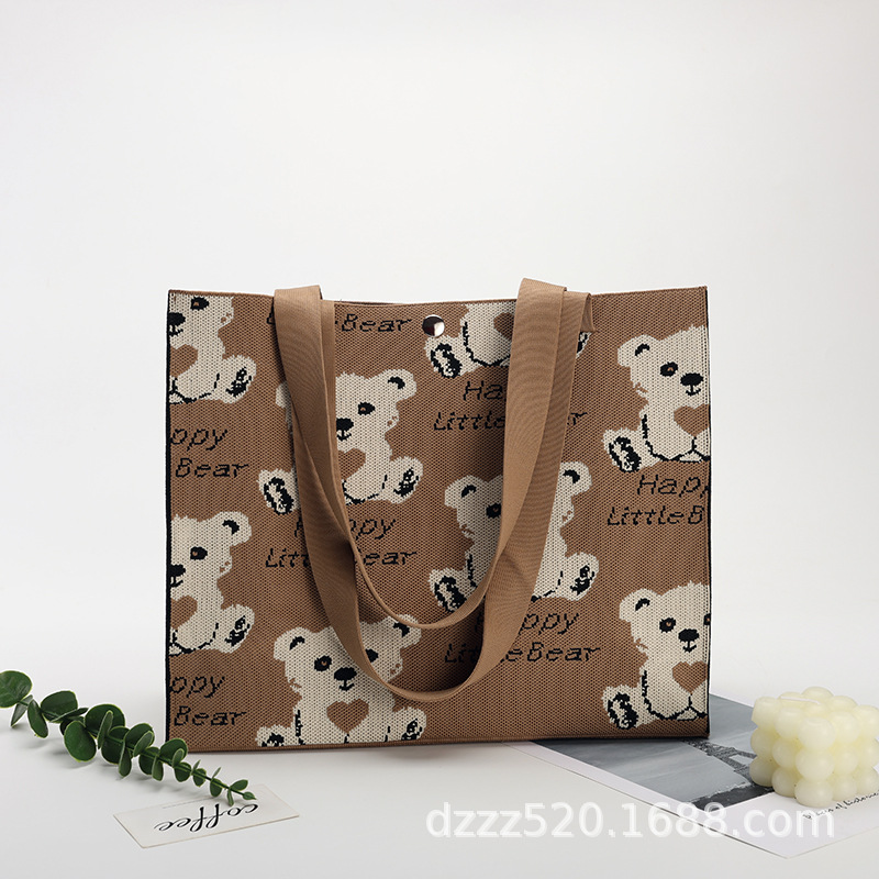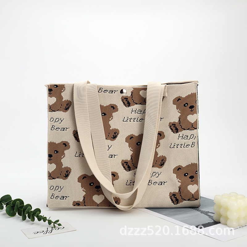 새로운 대용량 니트 베어 가방 통근 스퀘어 백 지퍼 어깨 크로스 바디 백 청두 핫 세일스토어 가기