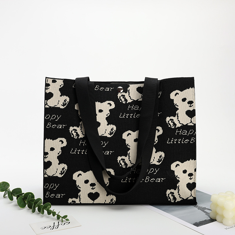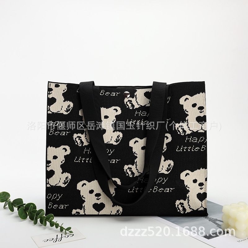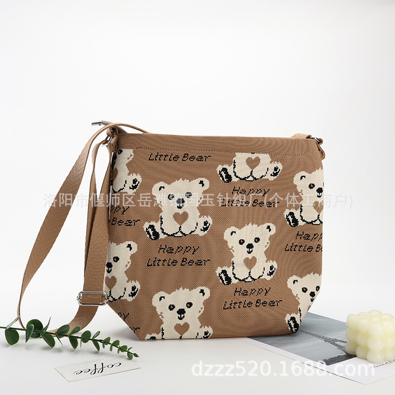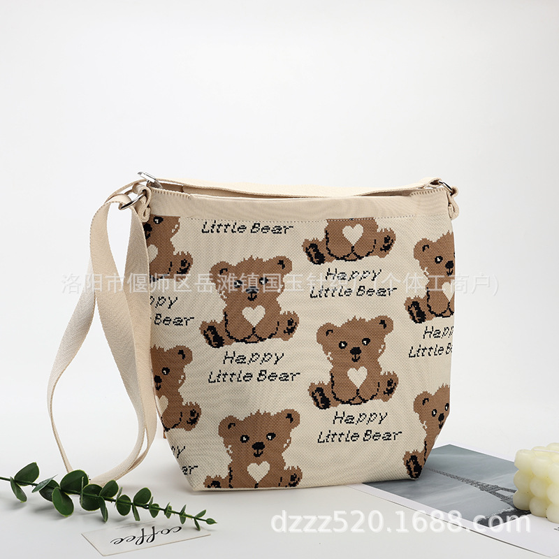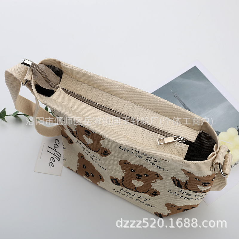 새로운 대용량 니트 베어 가방 통근 스퀘어 백 지퍼 어깨 크로스 바디 백 청두 핫 세일