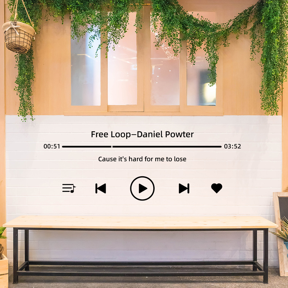 Yiyao DD23185 전체 투명 접착 영어 음악 재생 인터페이스 벽 스티커 벽 장식 분위기 자기 접착 스티커스토어 가기