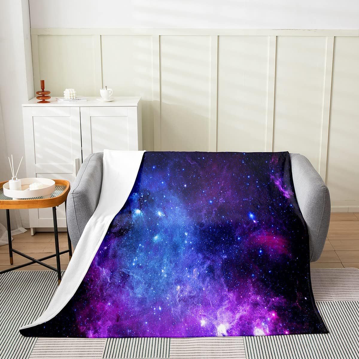 어린이를위한 플래넬 보라색 갤럭시 커버 담요 십대 소년 반짝이 스타 소파 런치 브레이크 담요