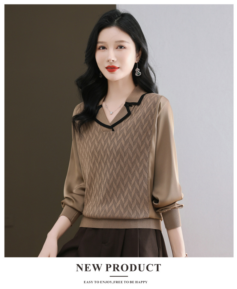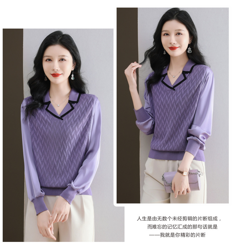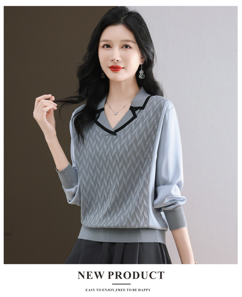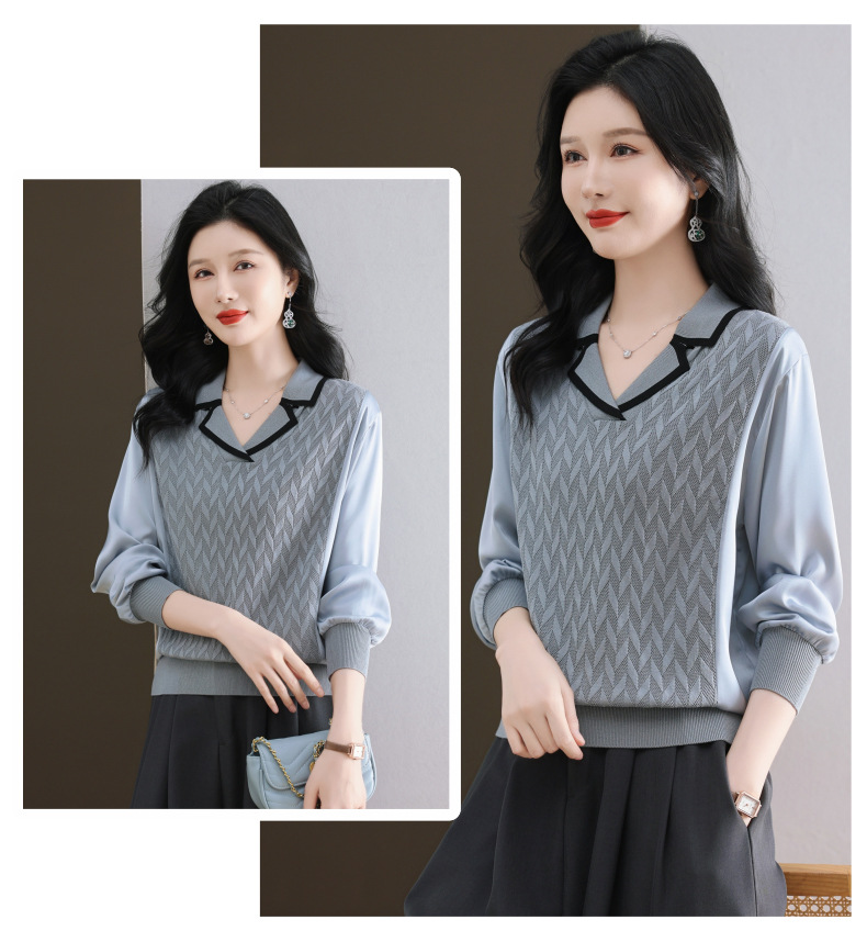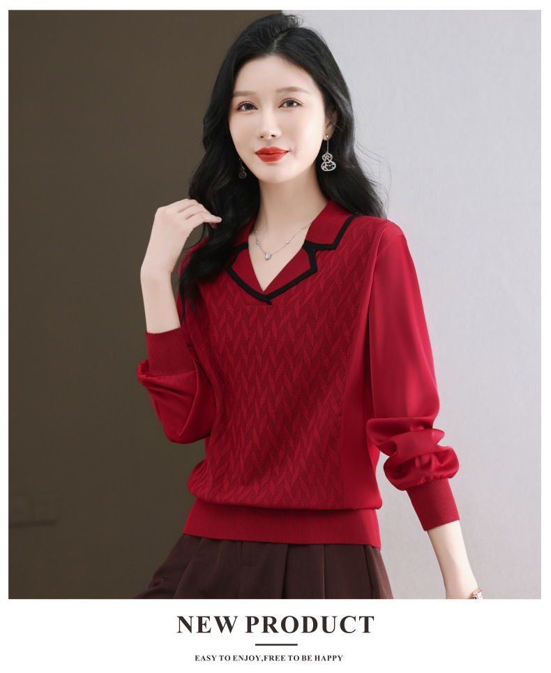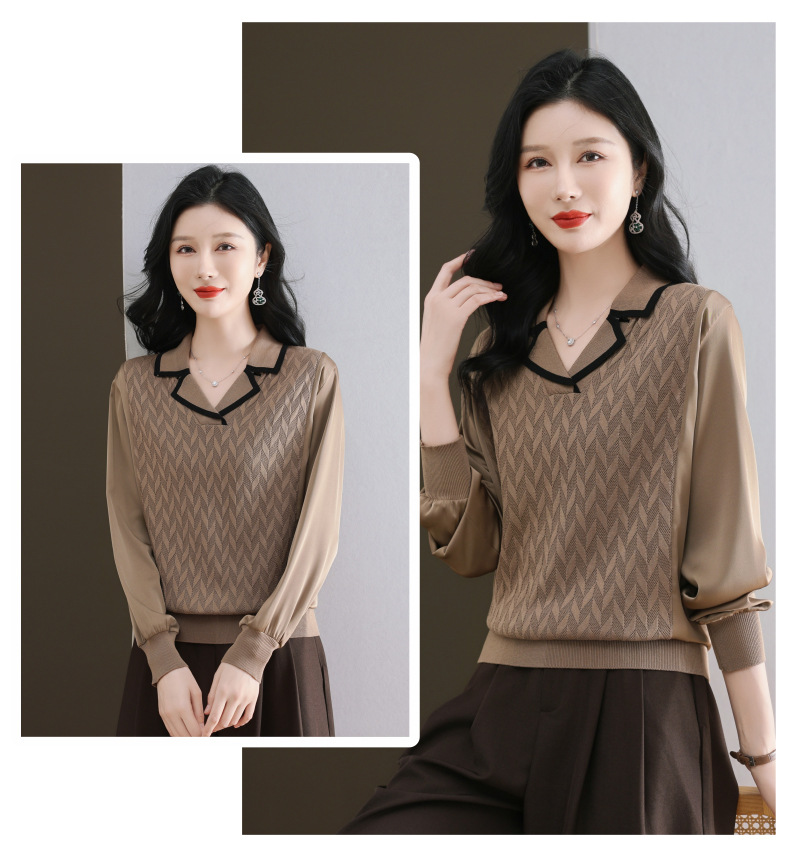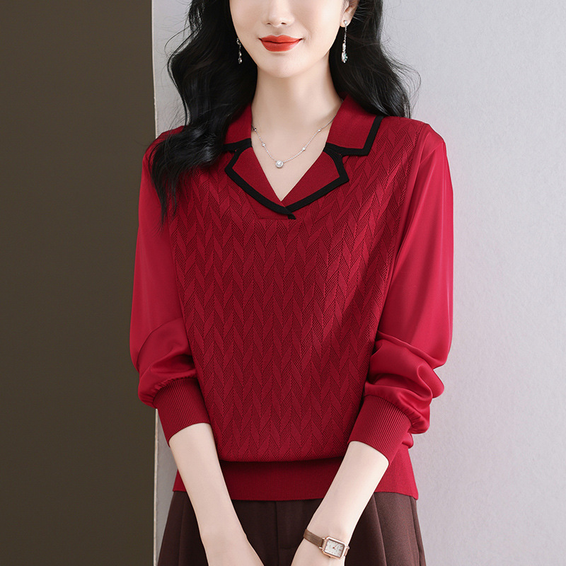 2025 새로운 봄과 가을 작은 셔츠 서양식 긴팔 티셔츠 얇은 기본 셔츠 랩 쉬폰 바느질 니트 탑스토어 가기