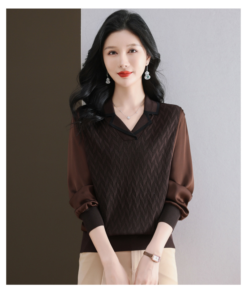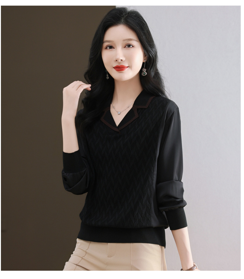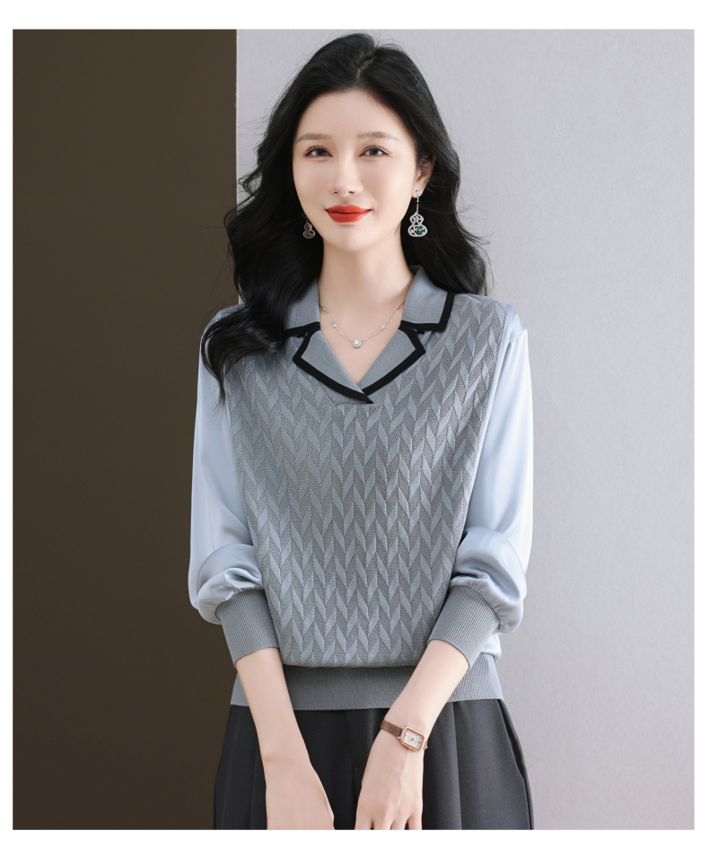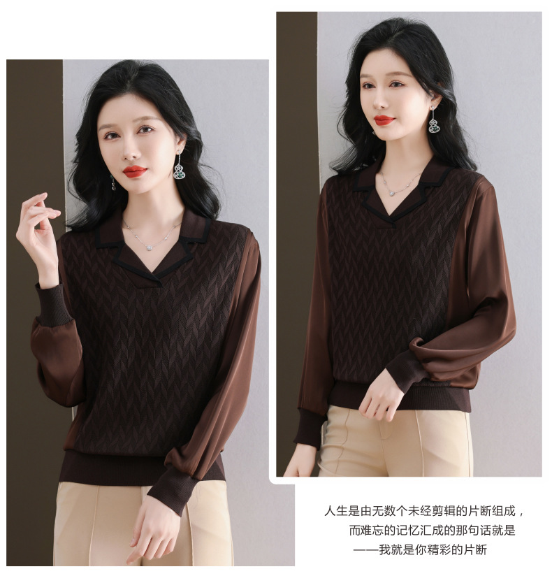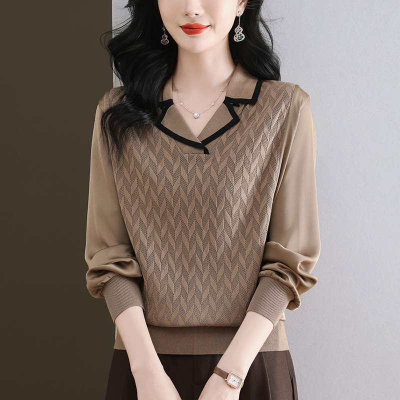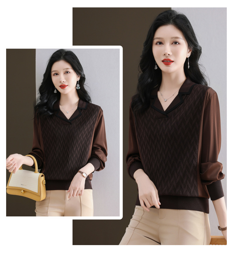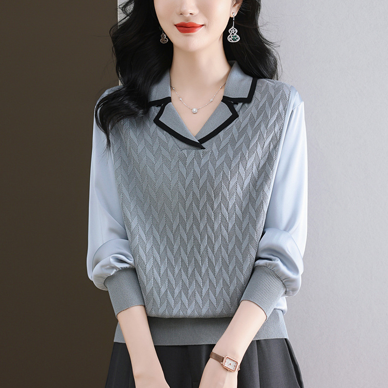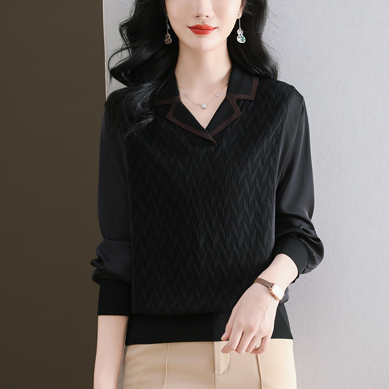 2025 새로운 봄과 가을 작은 셔츠 서양식 긴팔 티셔츠 얇은 기본 셔츠 랩 쉬폰 바느질 니트 탑스토어 가기