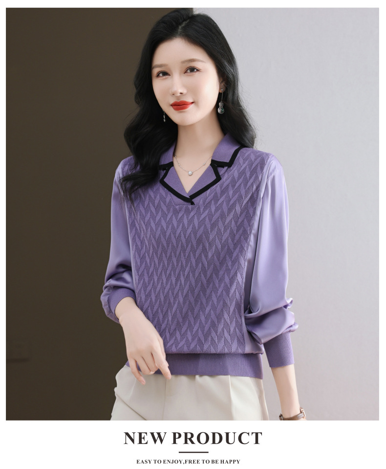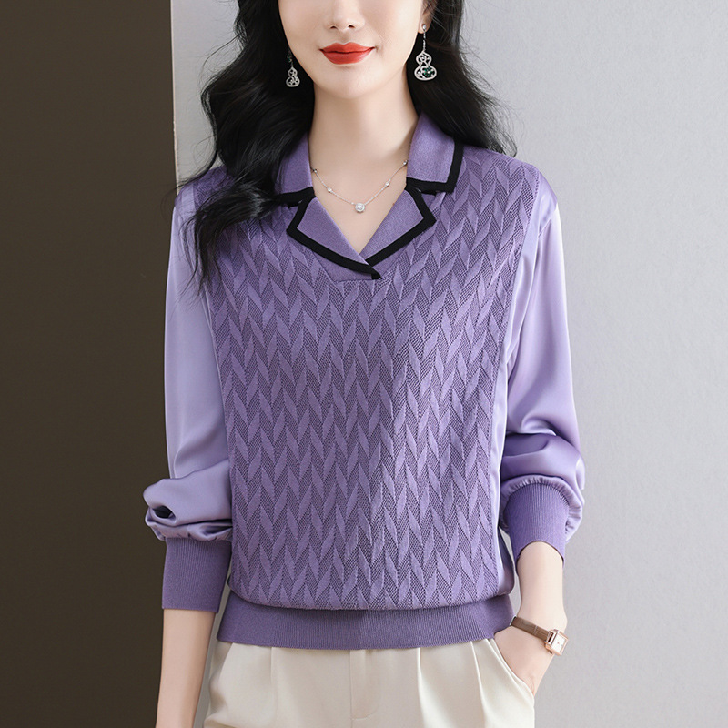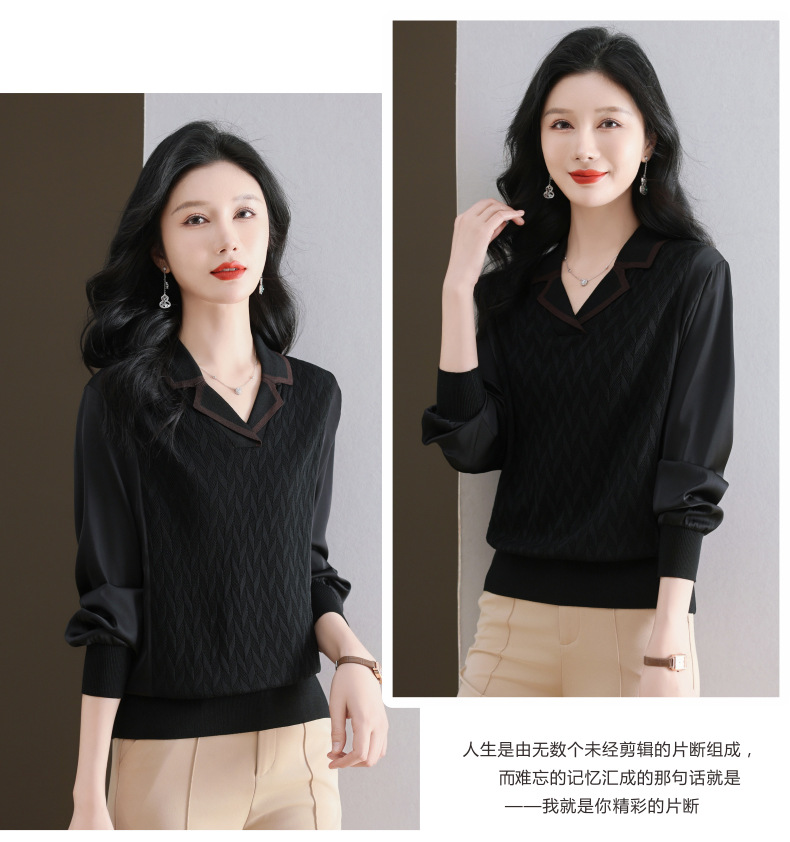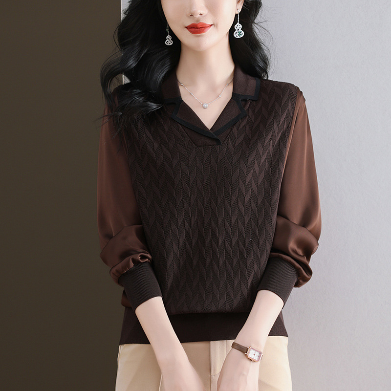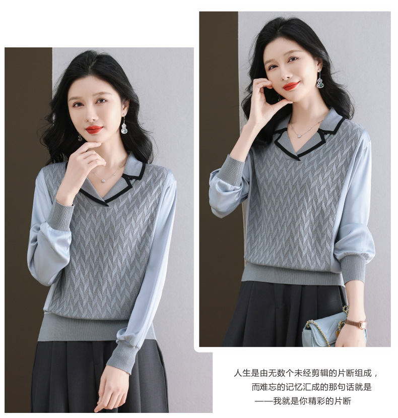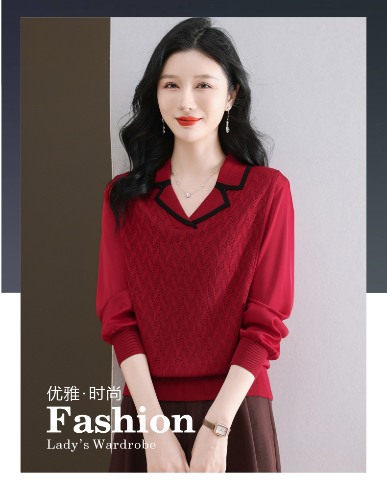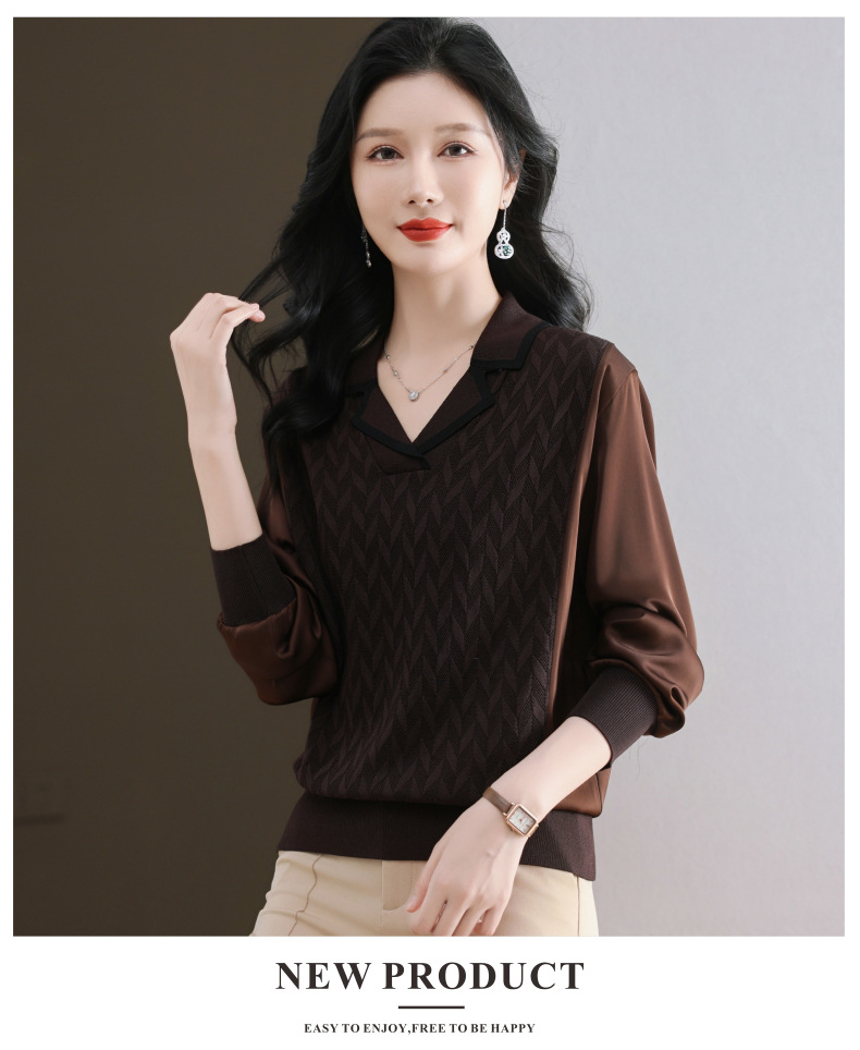 2025 새로운 봄과 가을 작은 셔츠 서양식 긴팔 티셔츠 얇은 기본 셔츠 랩 쉬폰 바느질 니트 탑스토어 가기