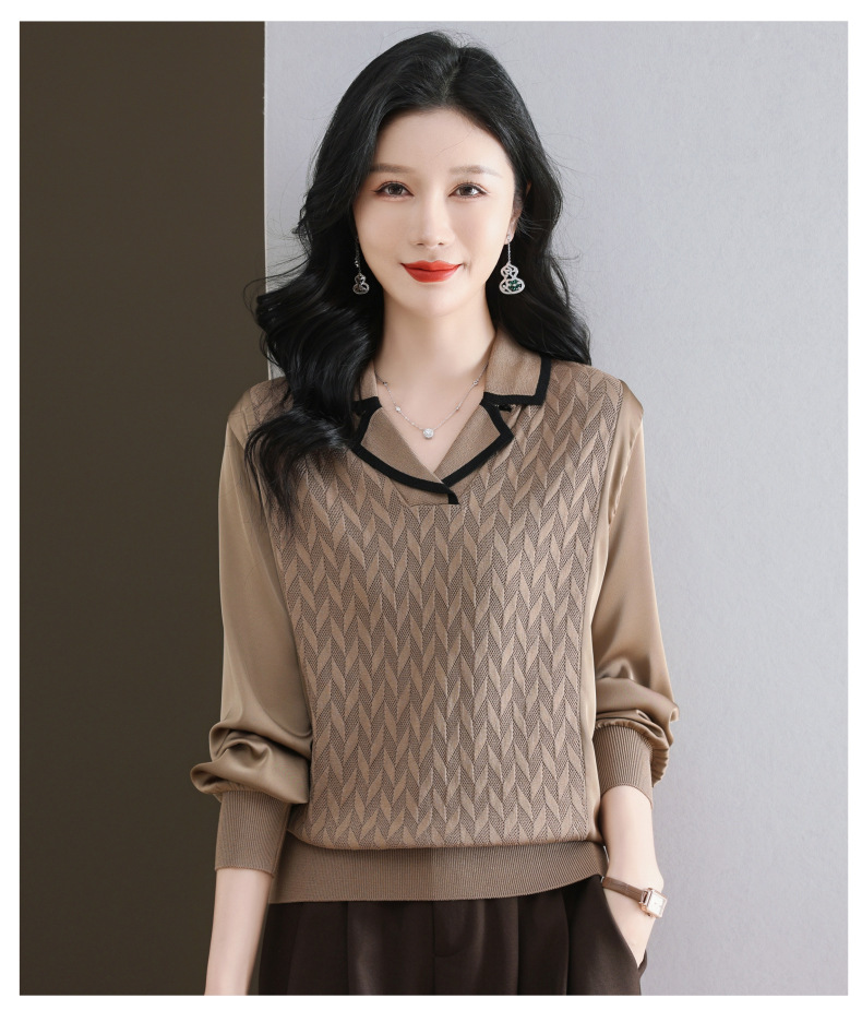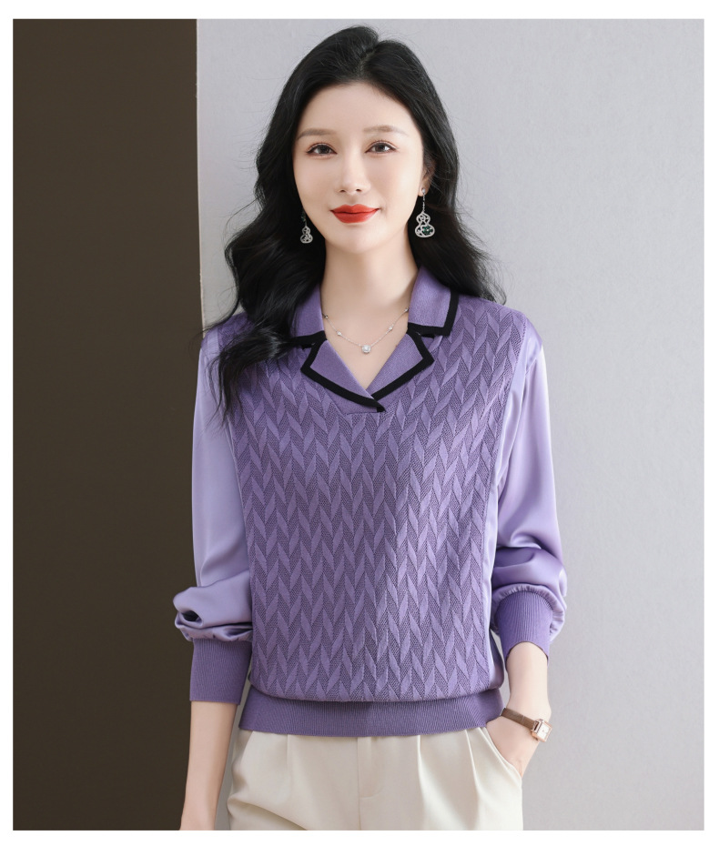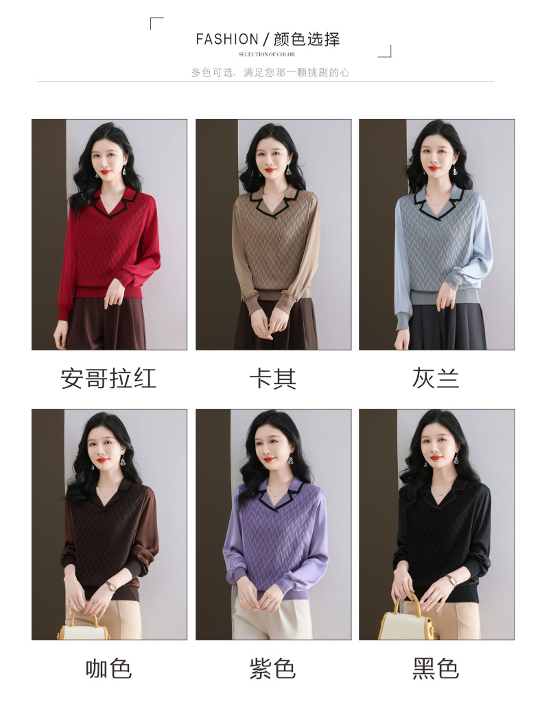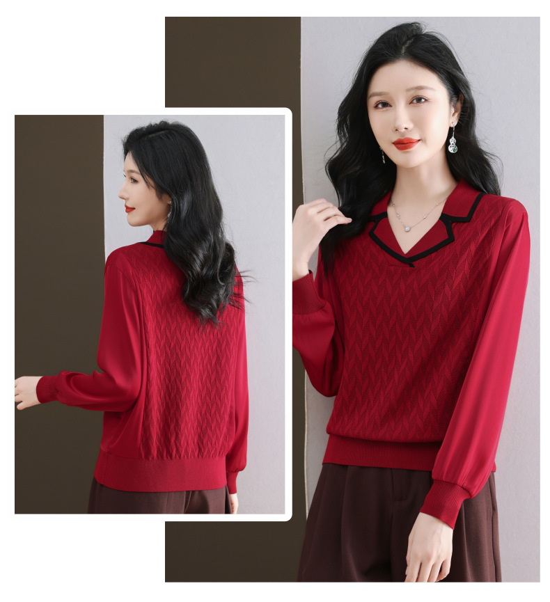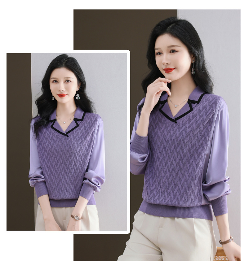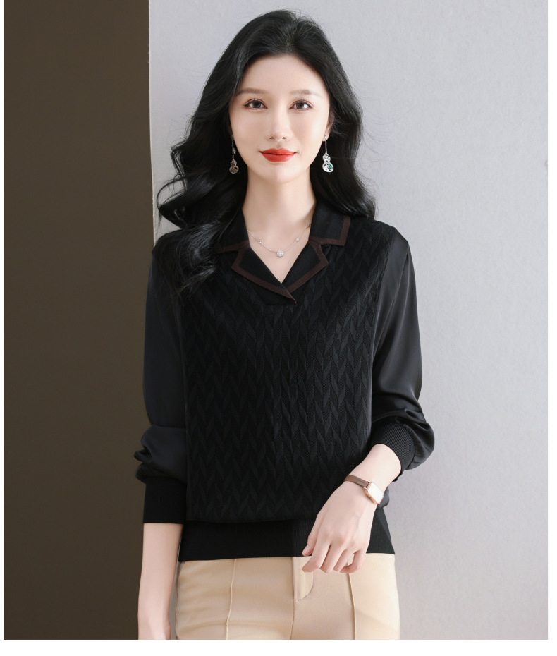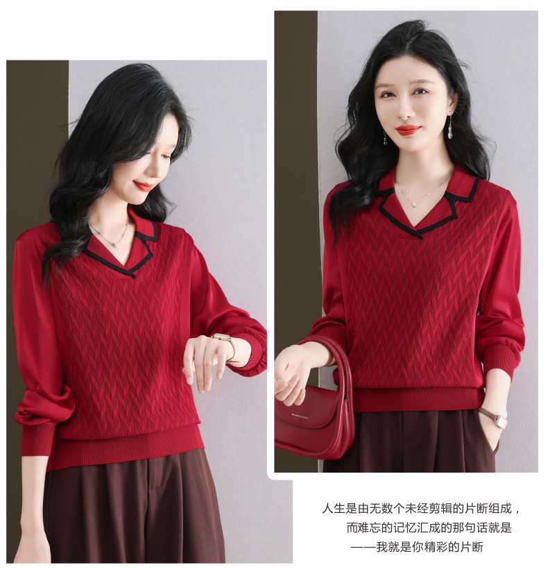 2025 새로운 봄과 가을 작은 셔츠 서양식 긴팔 티셔츠 얇은 기본 셔츠 랩 쉬폰 바느질 니트 탑스토어 가기