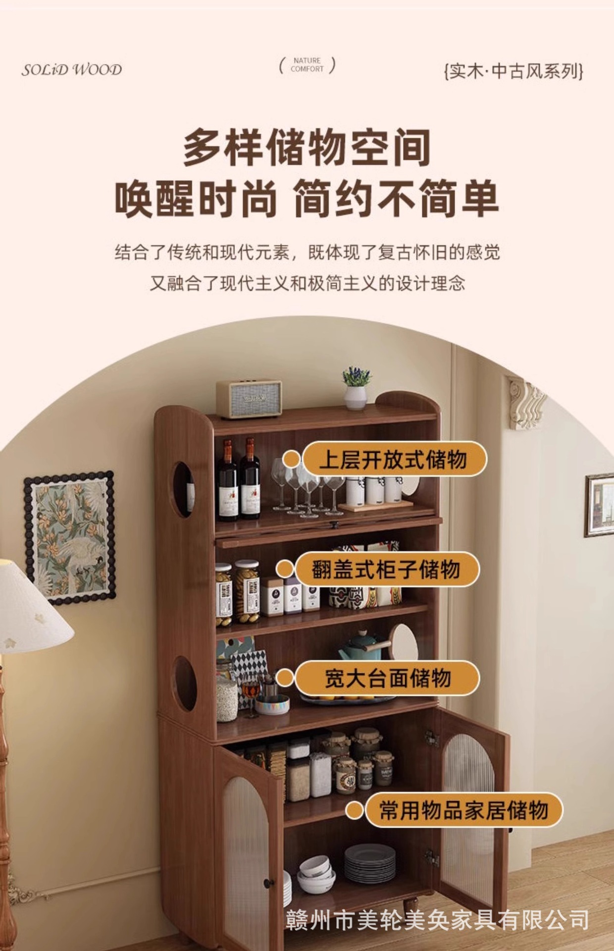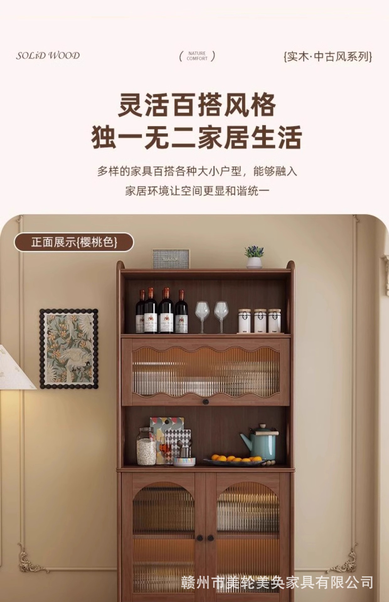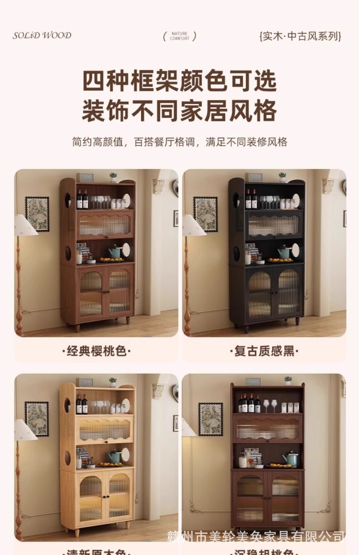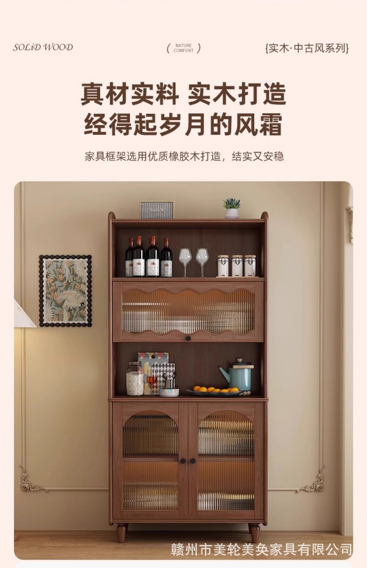 골동품 솔리드 우드 스토리지 사이드 보드 캐비닛 벽 높은 캐비닛 와인 캐비닛 가정용 레스토랑 차 대용량 저장 캐비닛