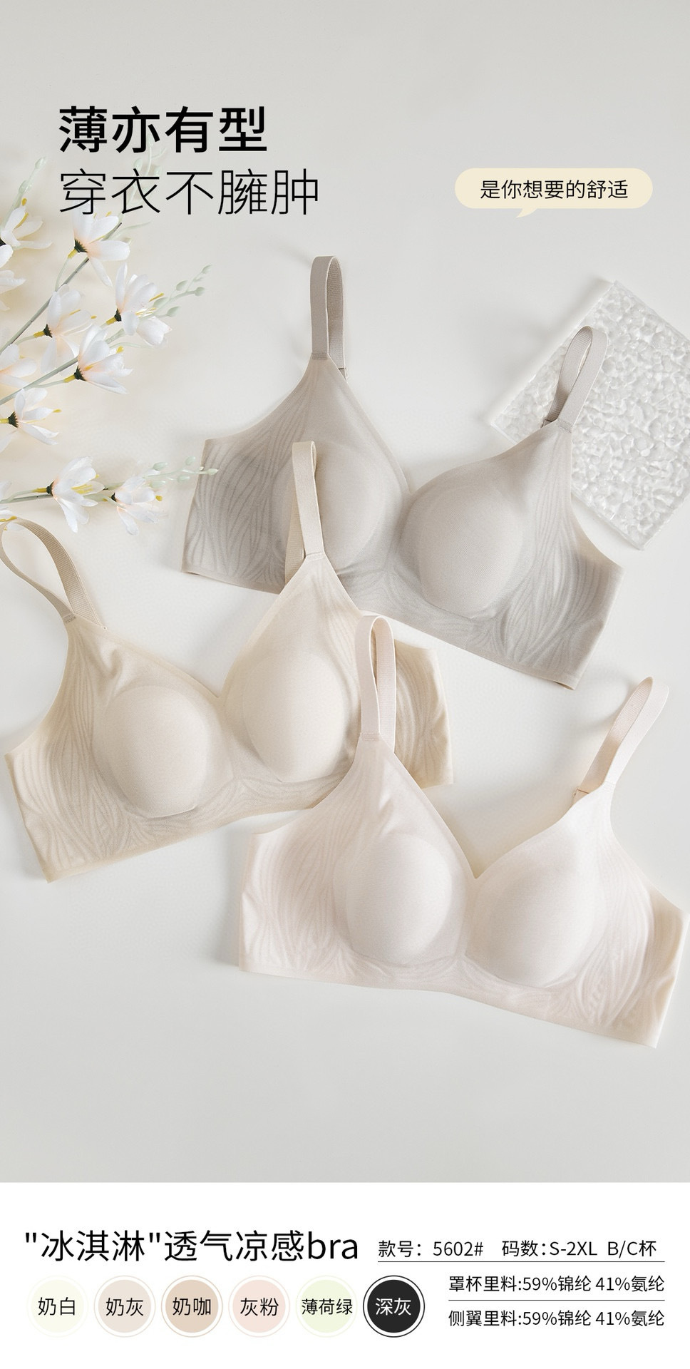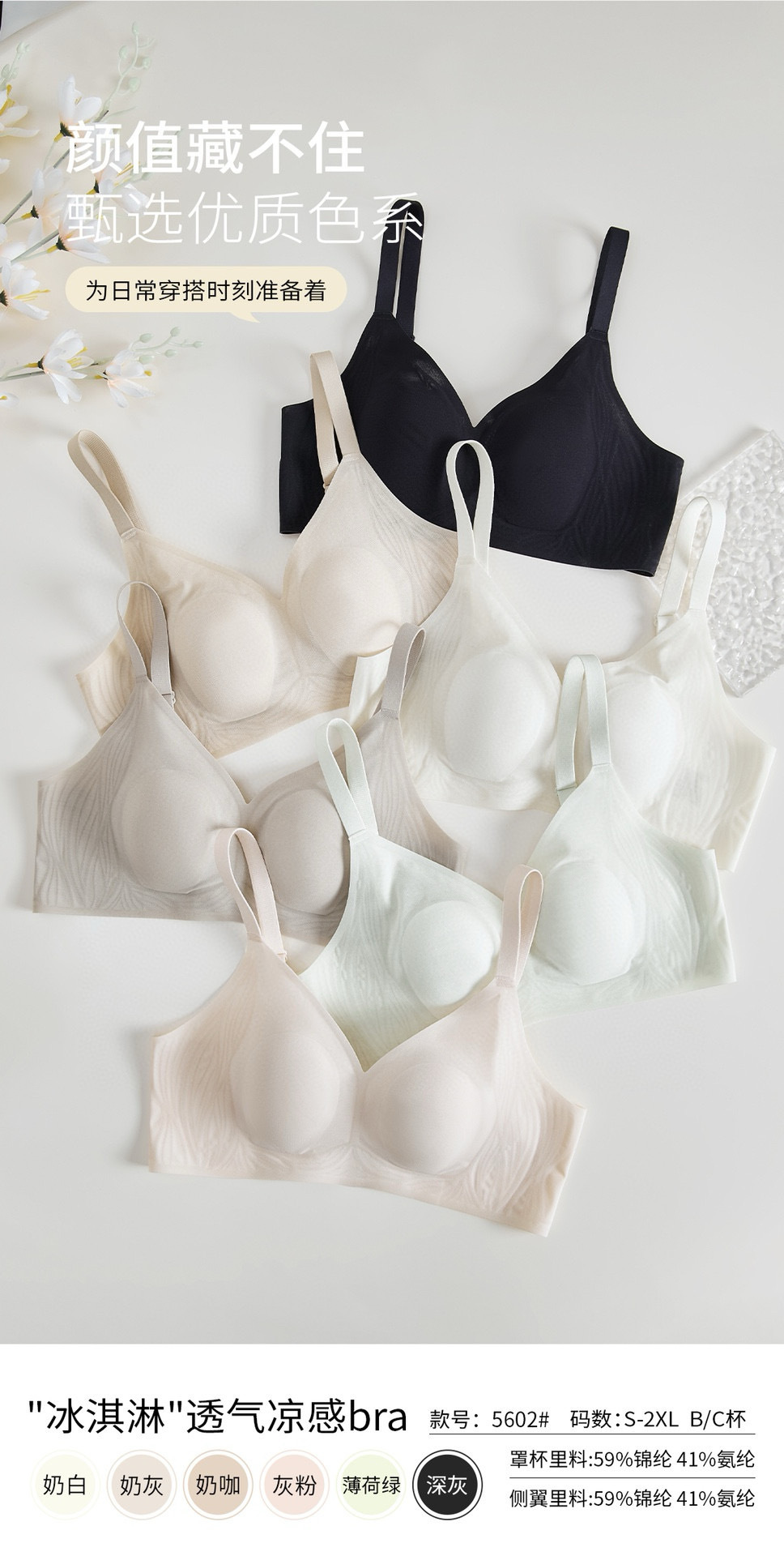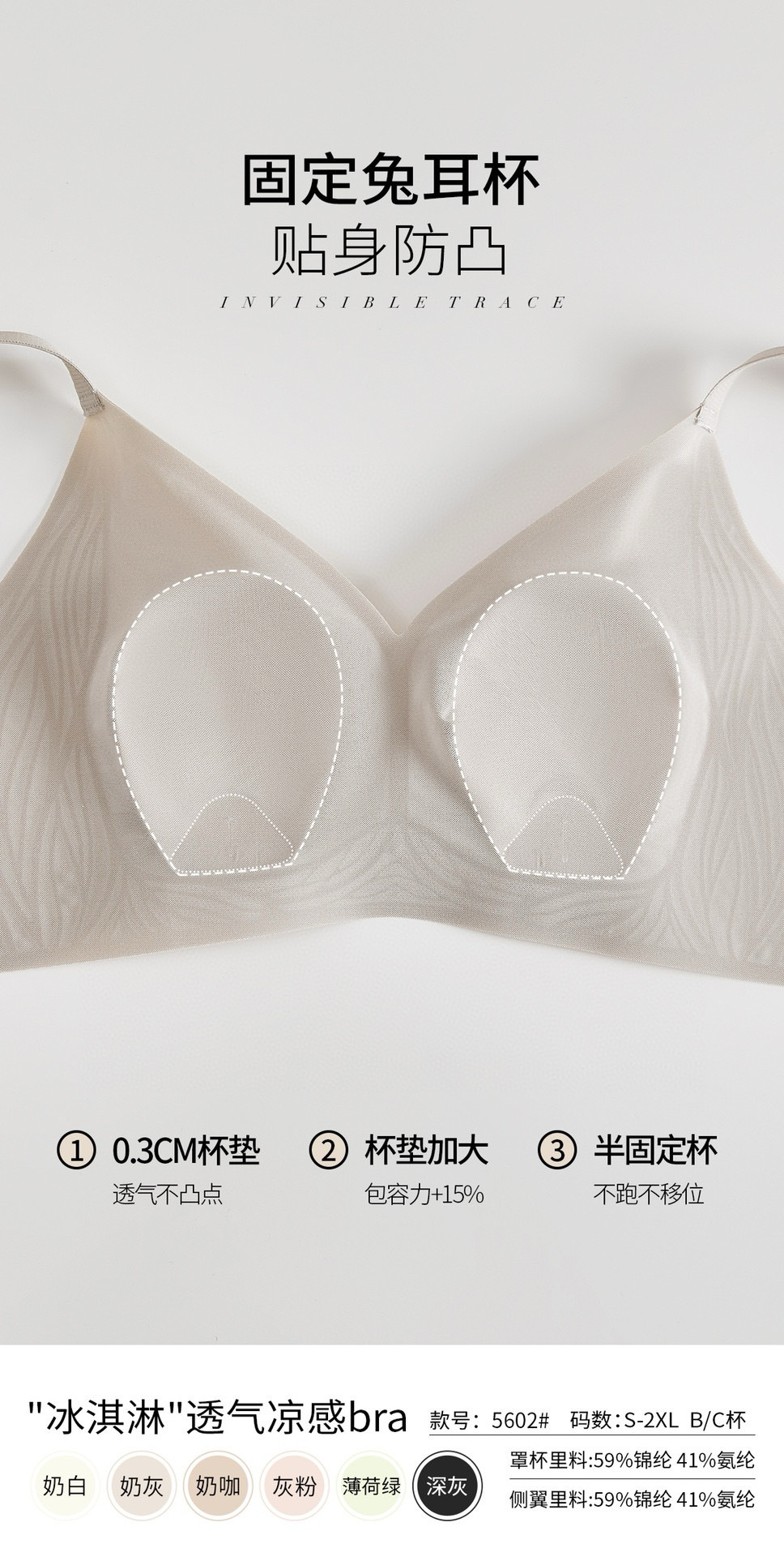 유행 얇은 토끼 귀 브래지어 여성의 큰 가슴 작은 통기성 브래지어 시원한 편안한 마크 솔리드 컬러 속옷 5602