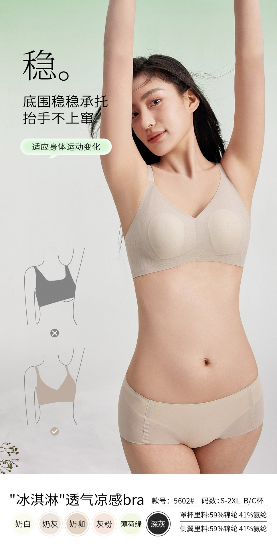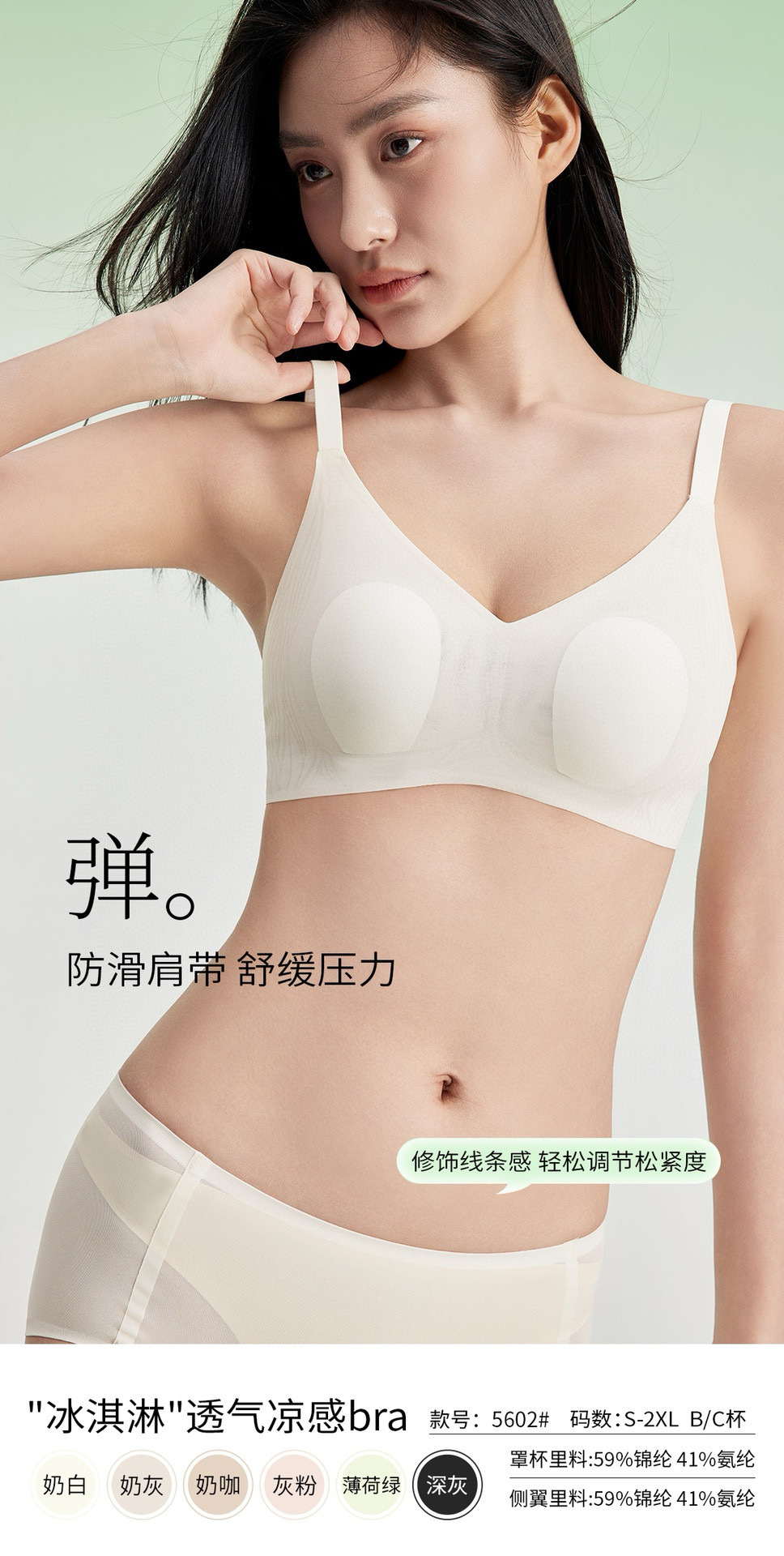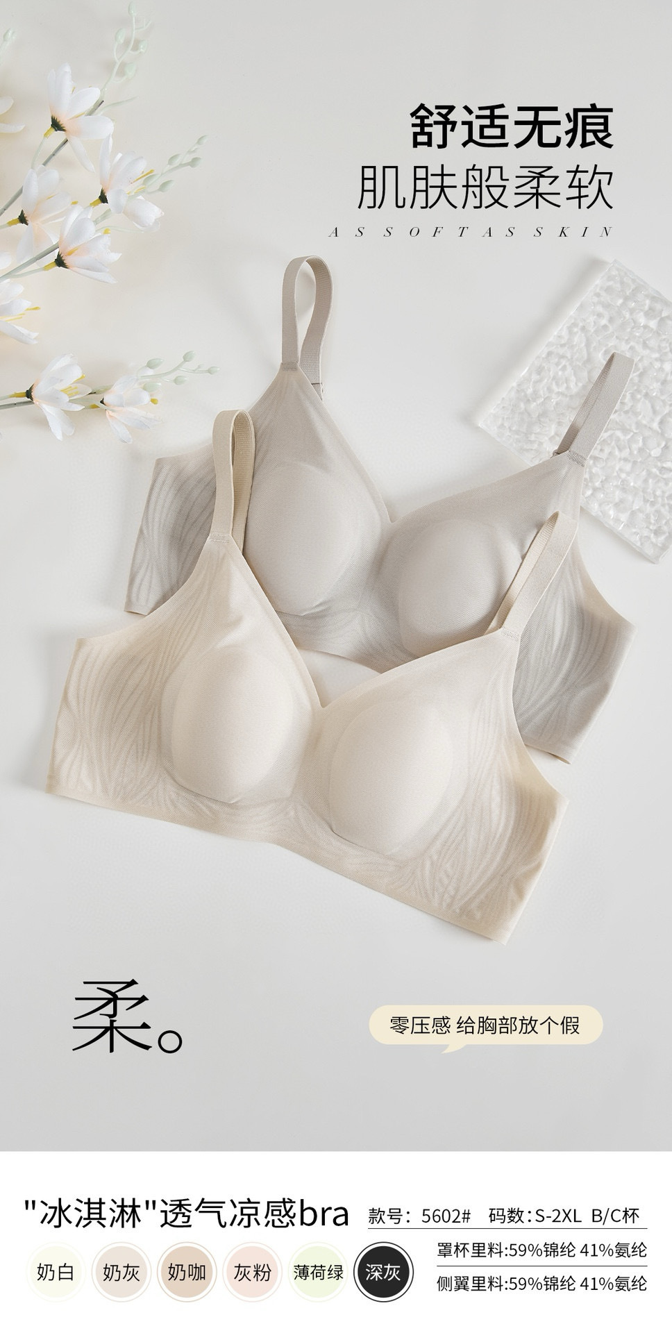 유행 얇은 토끼 귀 브래지어 여성의 큰 가슴 작은 통기성 브래지어 시원한 편안한 마크 솔리드 컬러 속옷 5602