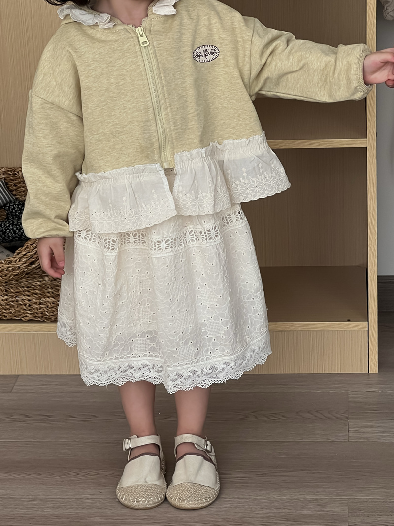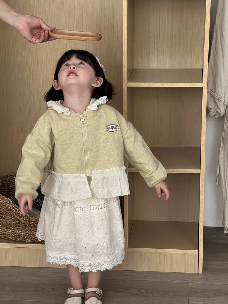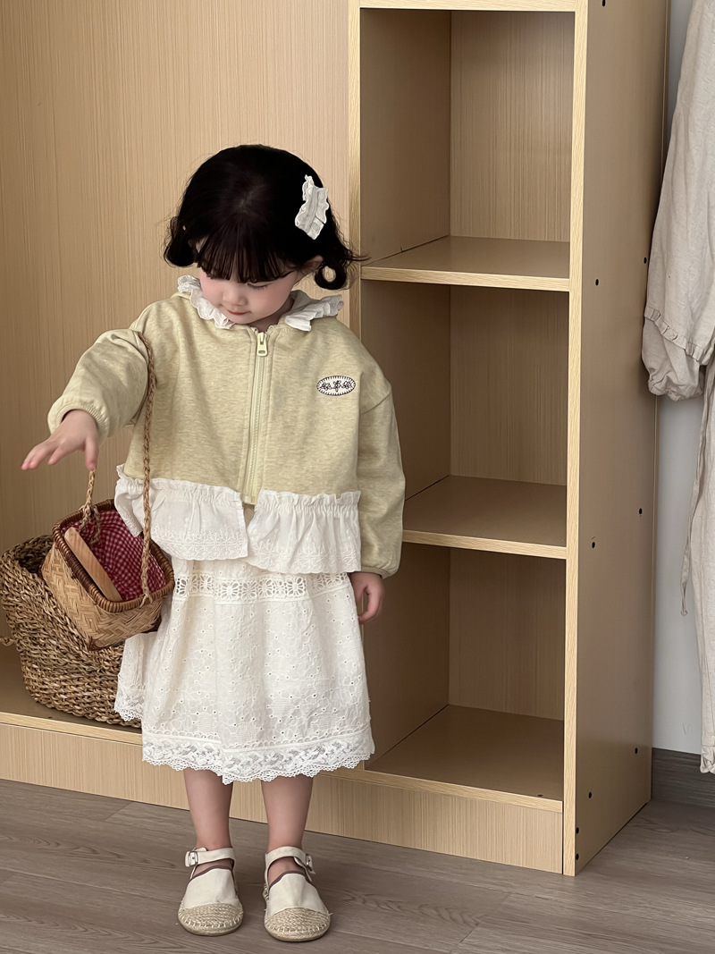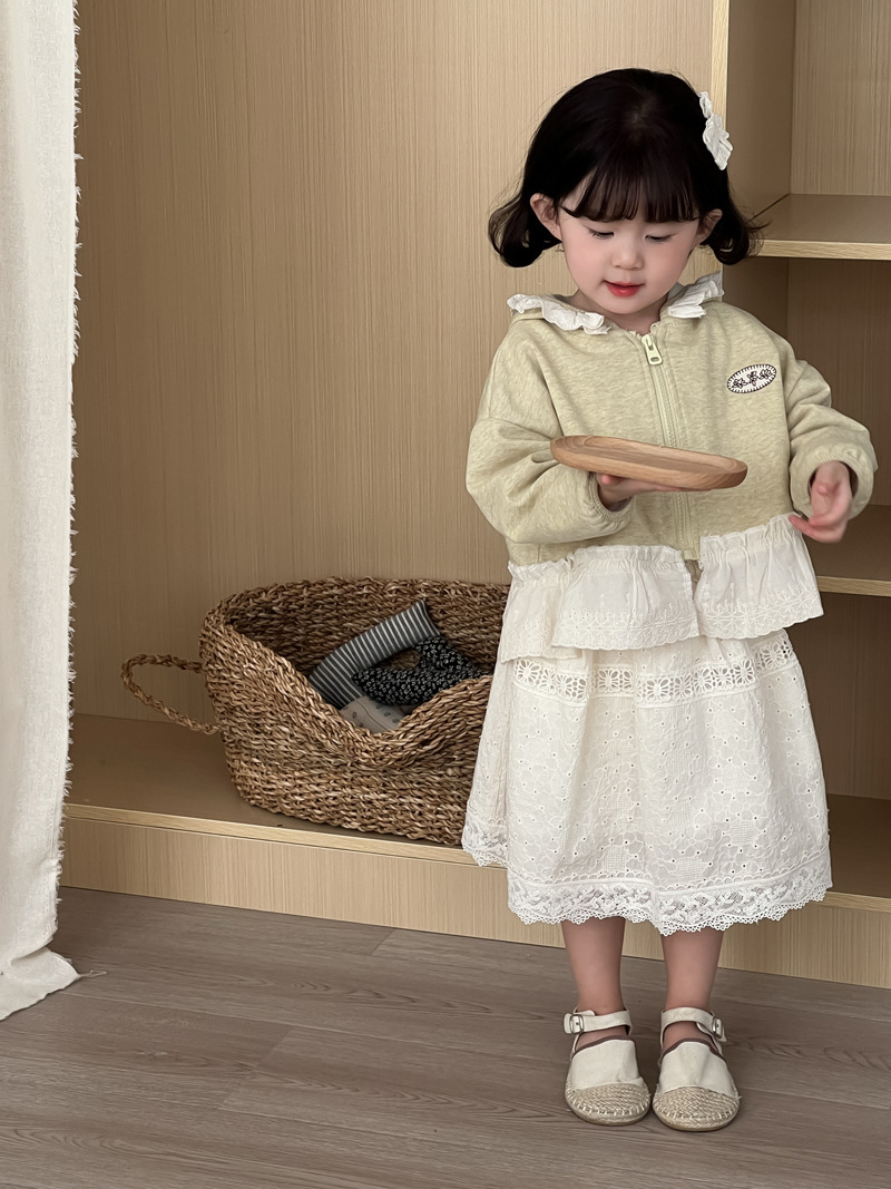 밀밭 시즌 봄과 여름 2025 새로운 아동복 한국 스타일 소녀 레이스 스커트 어린이 서양식 레이스 메쉬 스커트스토어 가기