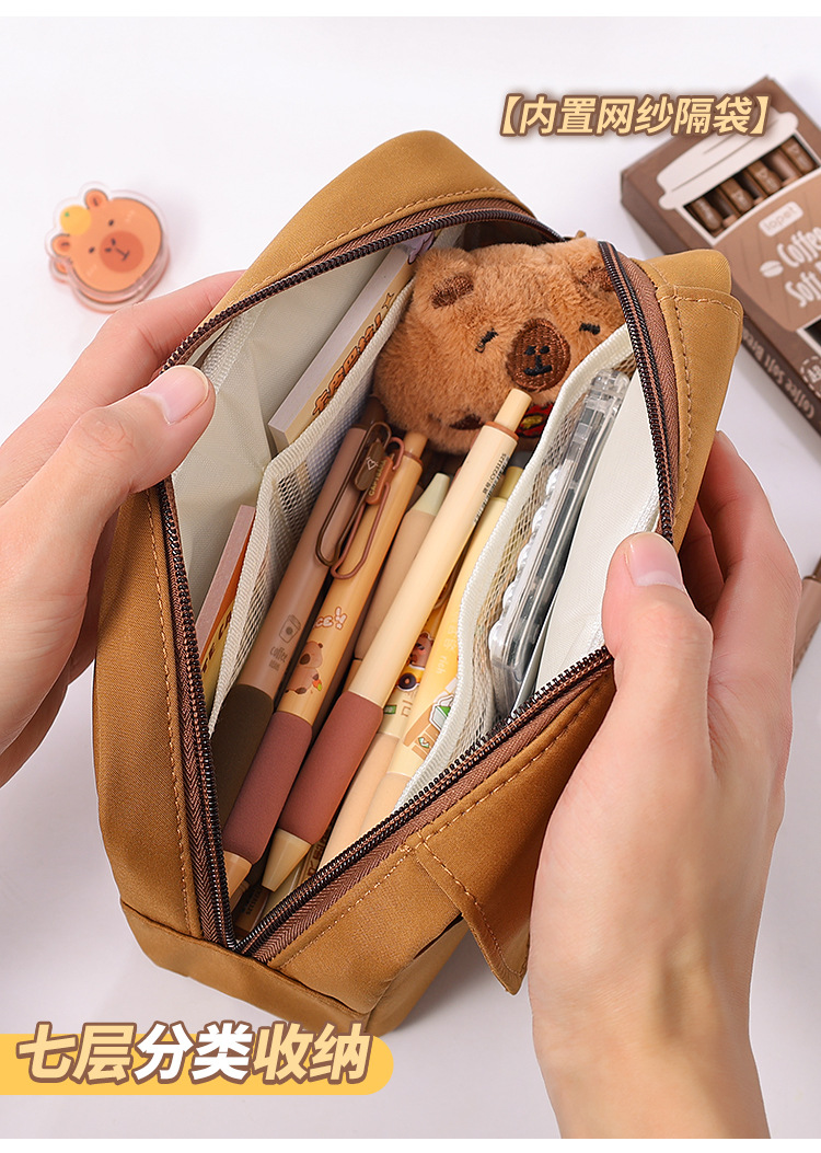 다기능 새 연필 가방, 대용량, 고급 연필 상자, 학생 귀여운 만화 문구 가방, 시뮬레이션된 고급 외관스토어 가기