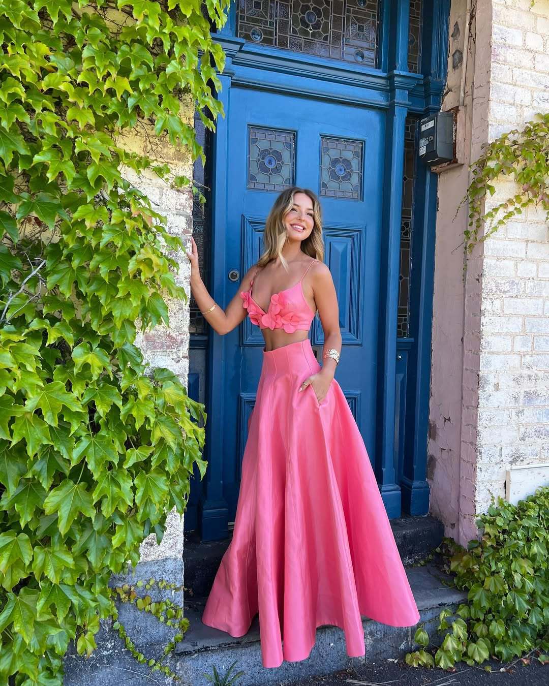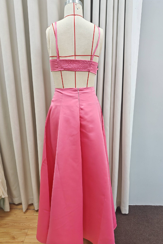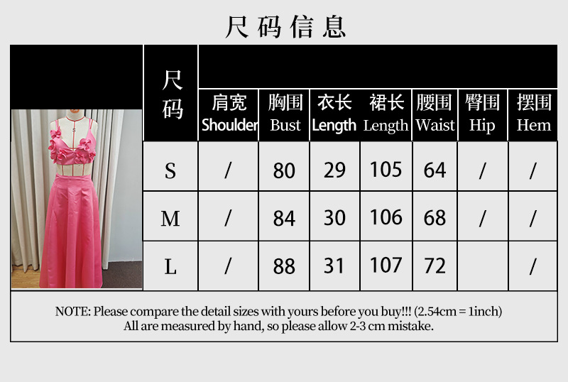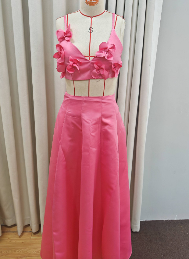단색 새틴 3 차원 꽃 조끼 치마 세트 국경 간 휴가 스트랩 쇼트 탑 하프 길이 스커트 2 피스 세트