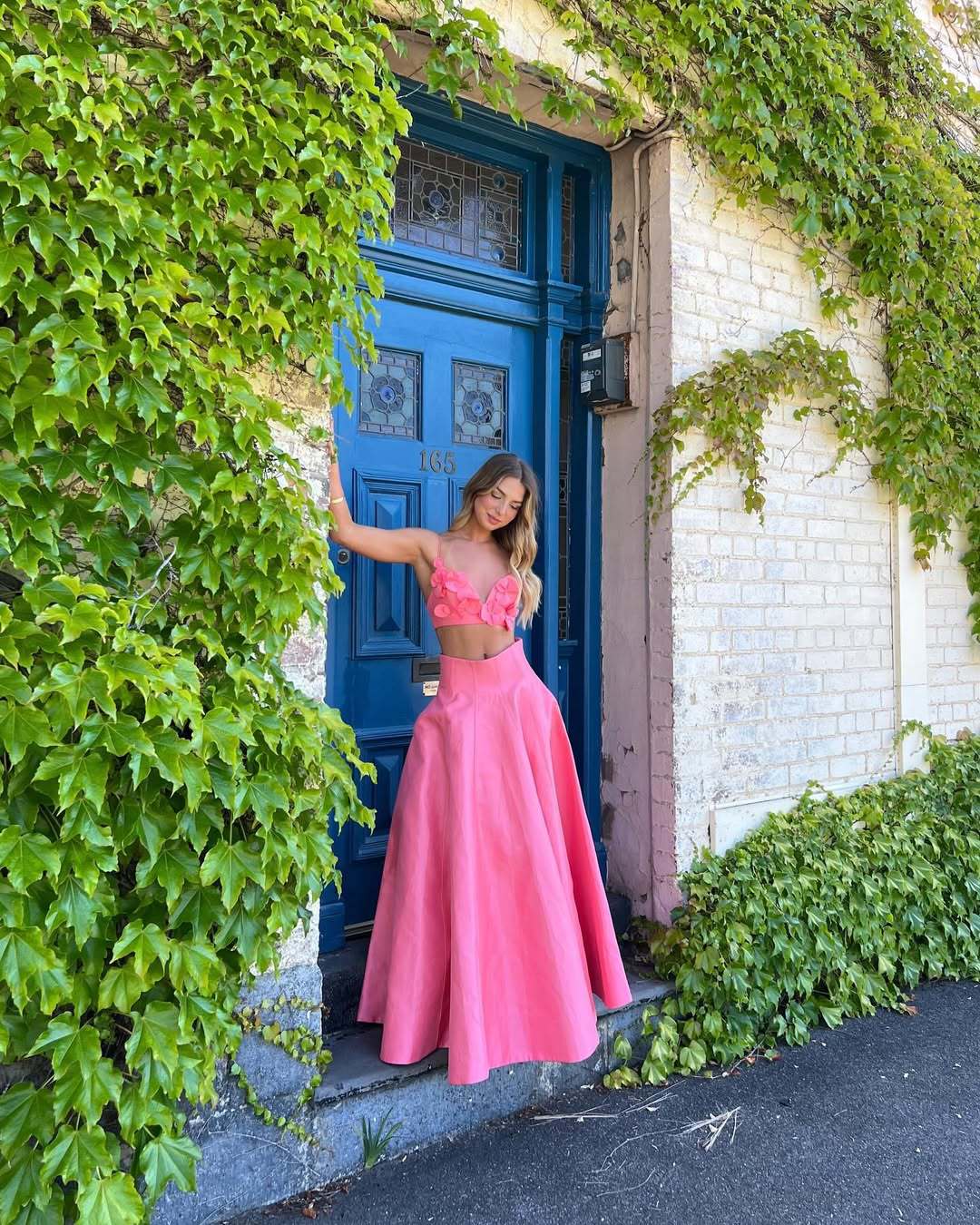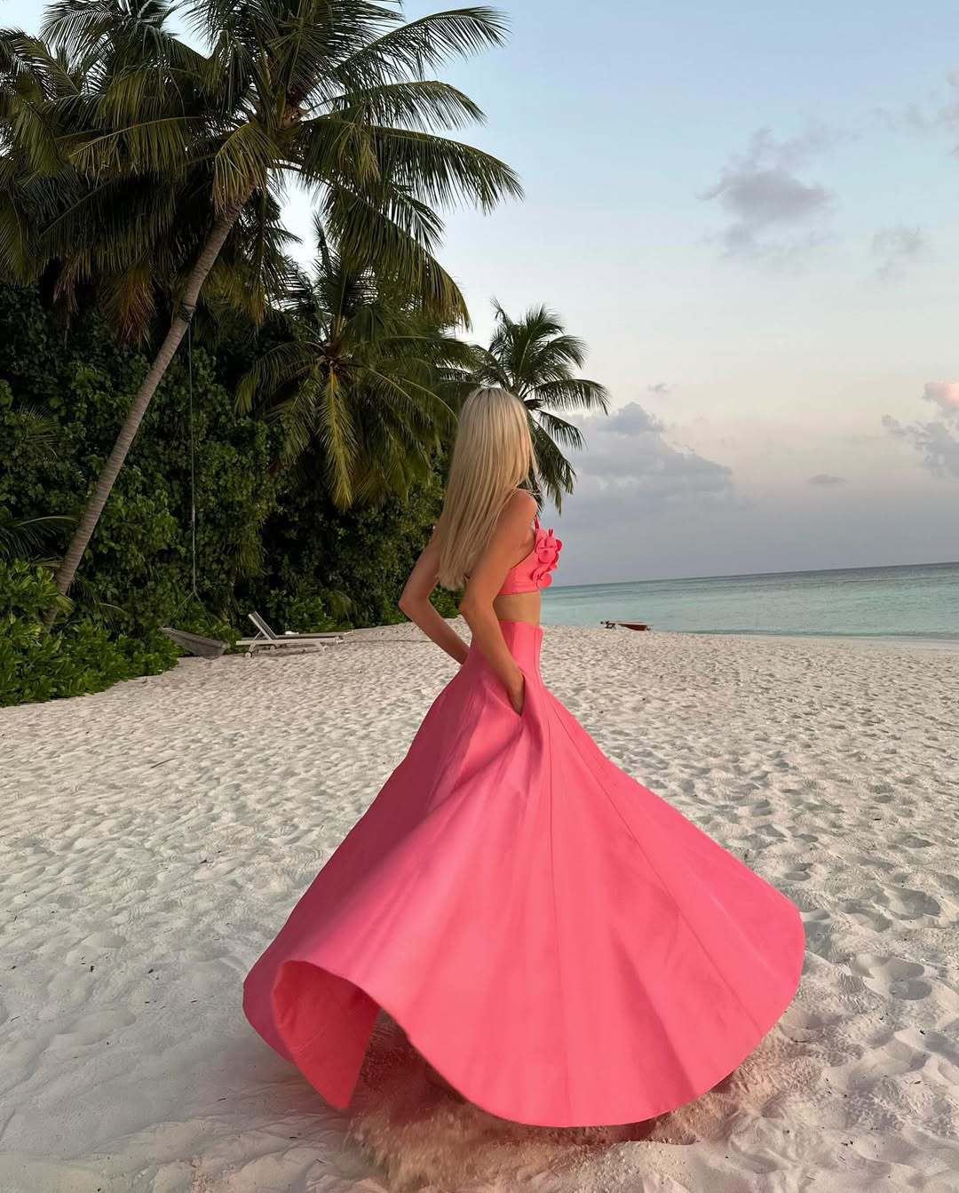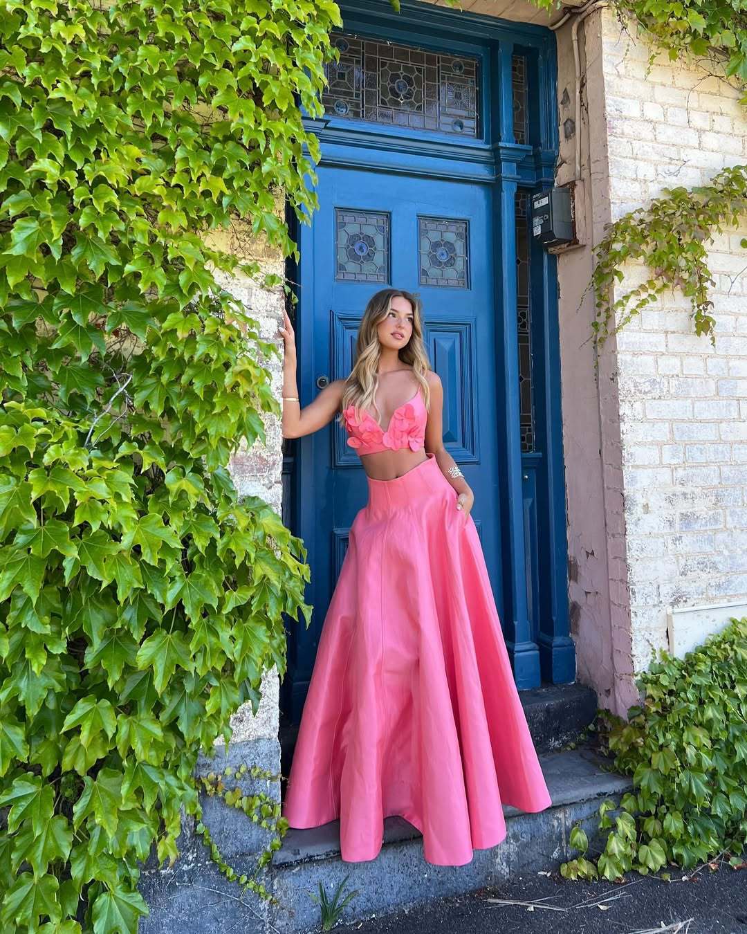 단색 새틴 3 차원 꽃 조끼 치마 세트 국경 간 휴가 스트랩 쇼트 탑 하프 길이 스커트 2 피스 세트