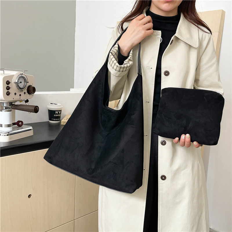 유행 간단한 대용량 어깨 가방 2025 새로운 복고풍 한국 유행 캐주얼 통근 솔리드 컬러 토트 백