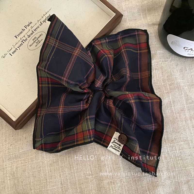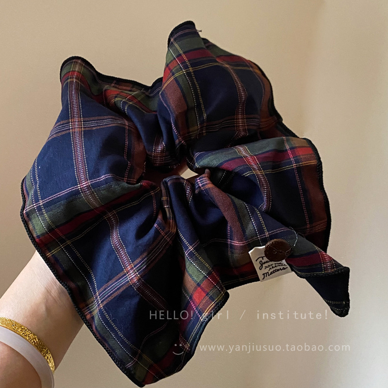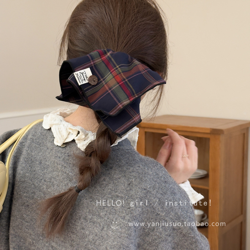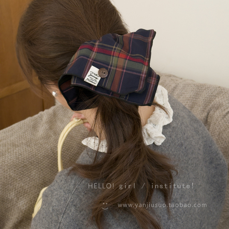 영국 아카데미 스타일 격자 무늬 스퀘어 스퀘어 헤어 링 가을과 겨울 올 매치 천 라벨 버튼 볼 헤어 고무 텐든 헤어 로프 헤어 액세서리스토어 가기