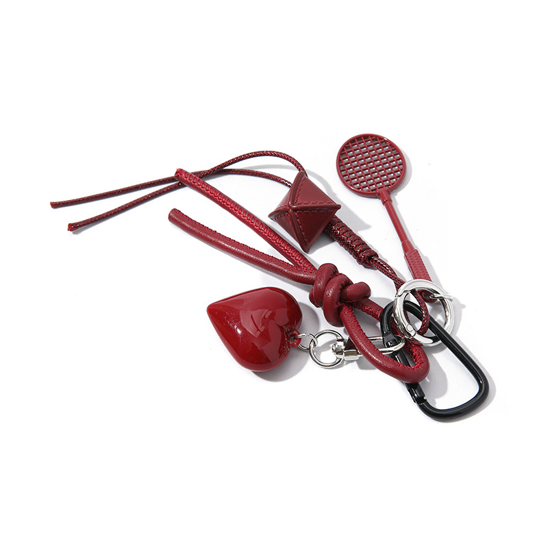 국경 간 miu 가을과 겨울 패션 손으로 짠 가죽 로프 크리스탈 사랑 펜던트 키 체인 가방 매달려 자동차 장식품