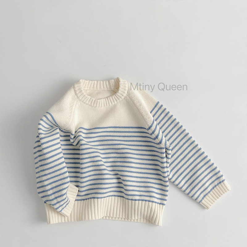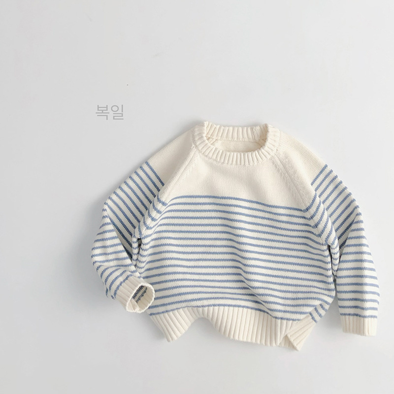ch 일본과 한국의 다양한 색상 ~ 면 아동 스웨터 한국식 루즈 자켓 스트라이프 플러그인 니트 스웨터 아동용스토어 가기
