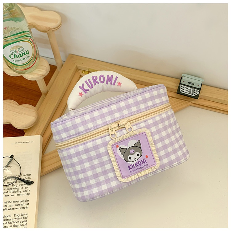 만화 귀여운 신선한 격자 무늬 보관 가방 개인화 된 창조적 인 높은 얼굴 가치 대용량 휴대용 화장품 가방 보관 가방