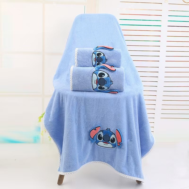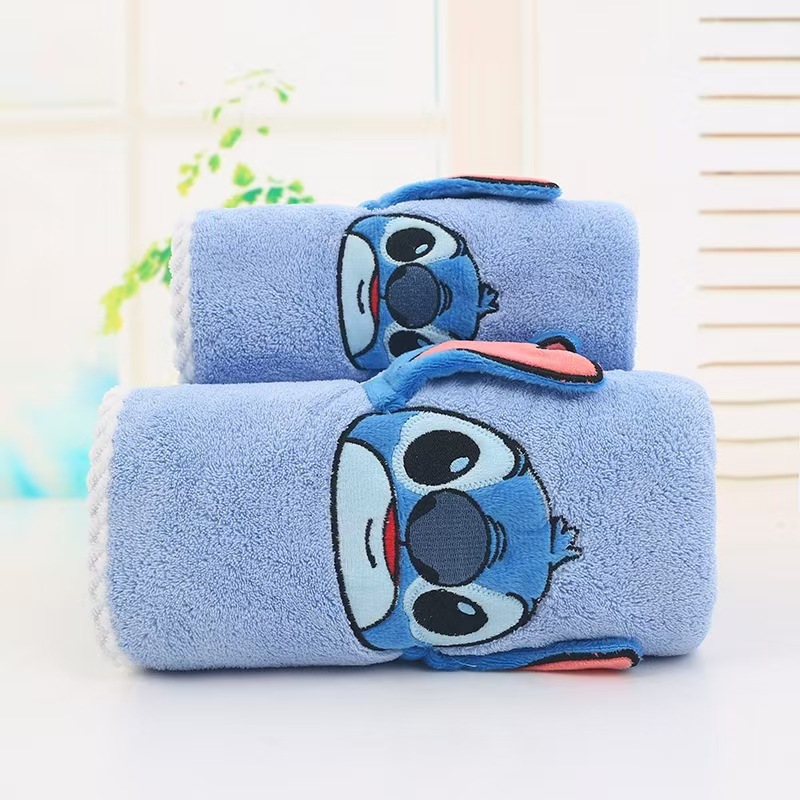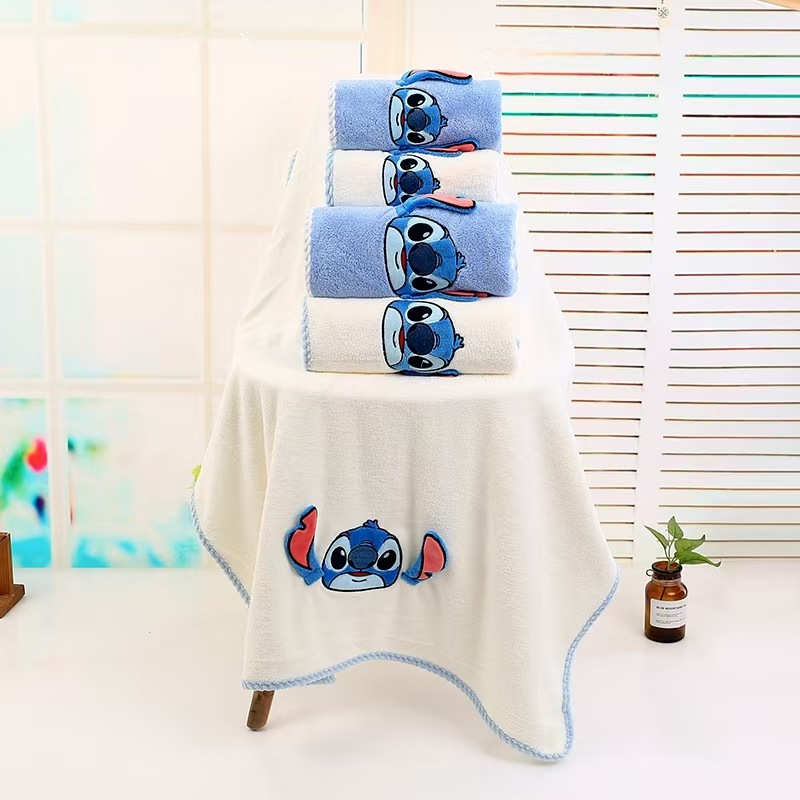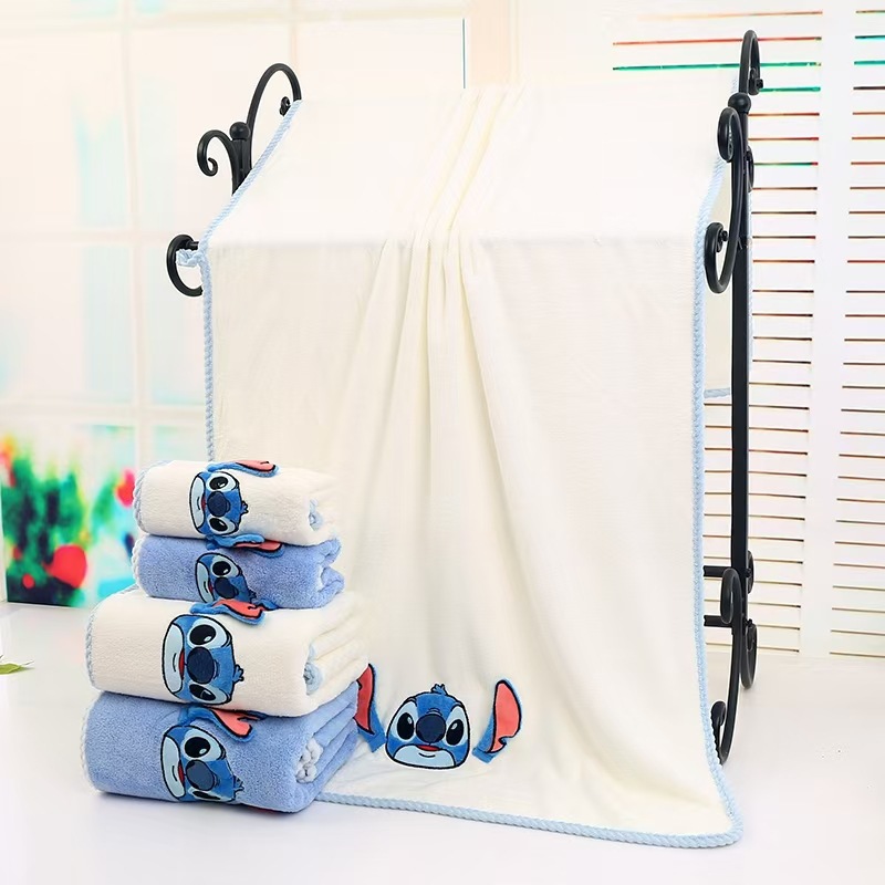 산호 양털 만화 자수 수건 세트 스티치 두꺼운 성인 흡수성 부드러운 커플 빠른 건조