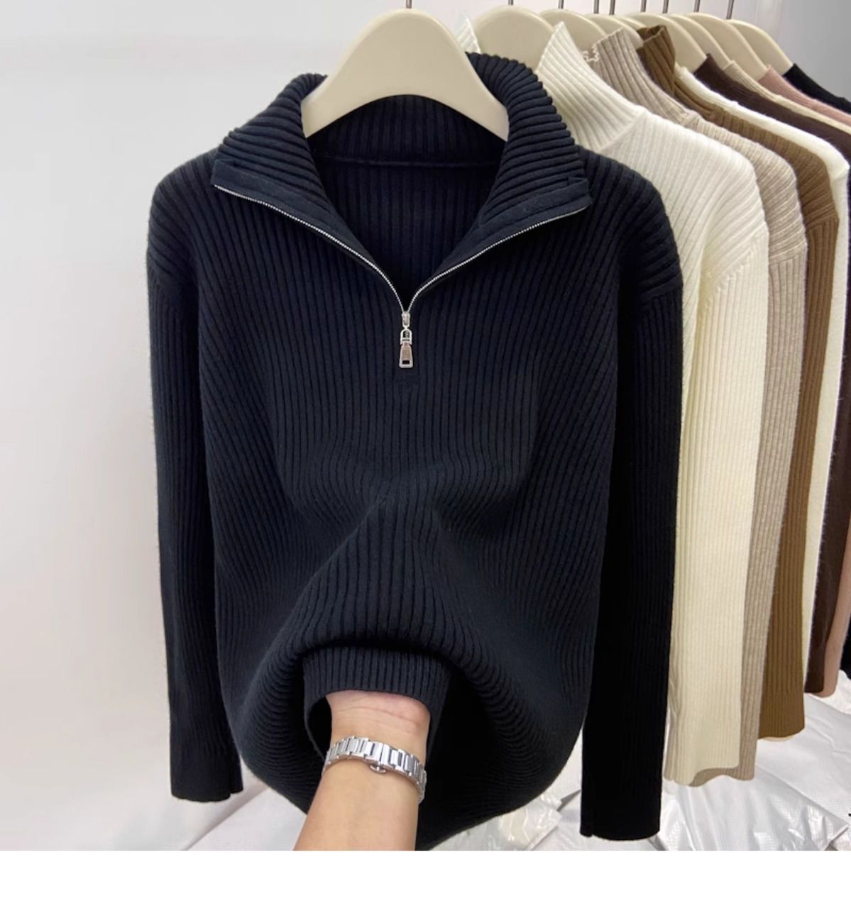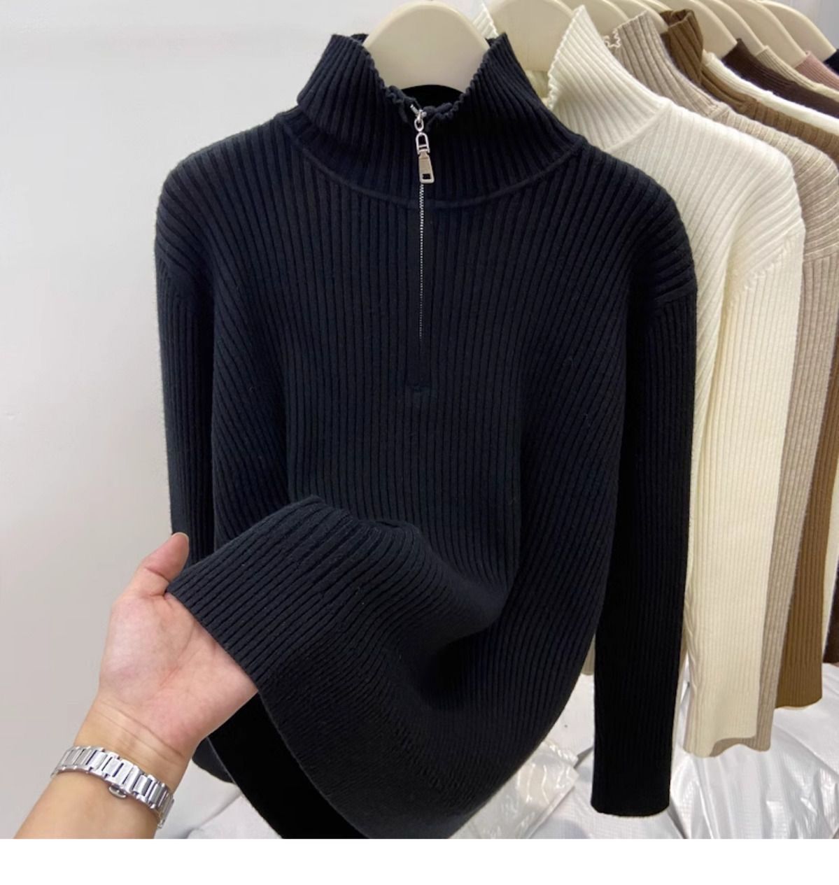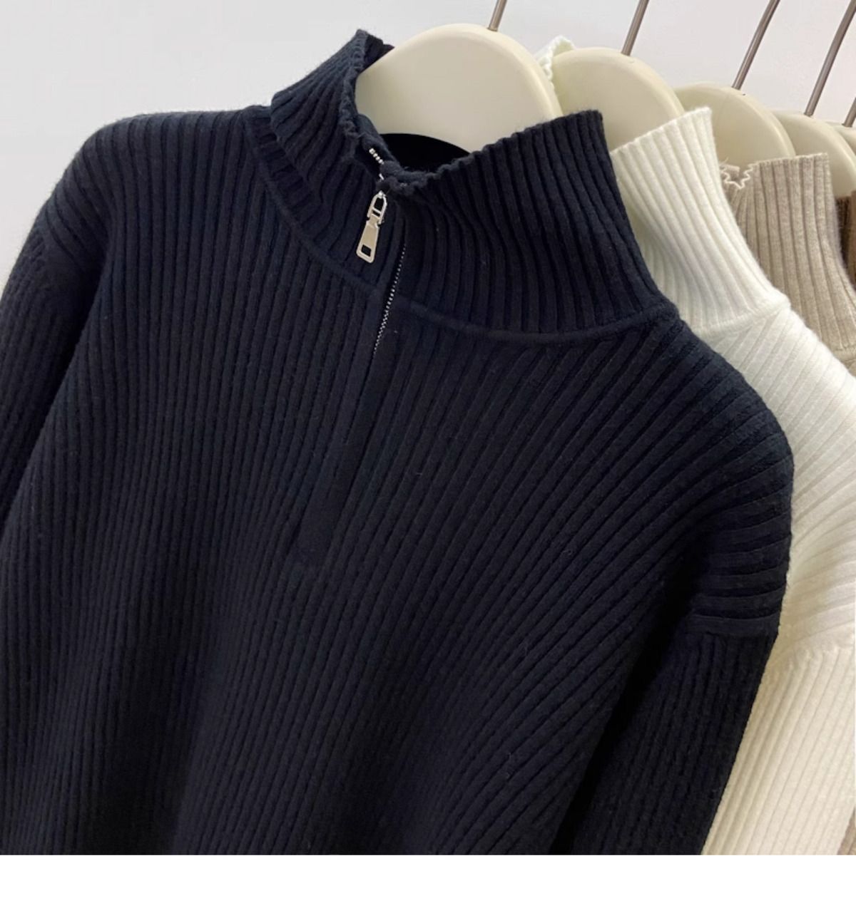 [40.00 kg-100.00 kg] 가을과 겨울 지퍼 터틀넥 스웨터 여성베이스 셔츠 풀오버 두꺼운 느슨한 한국 외국식 탑