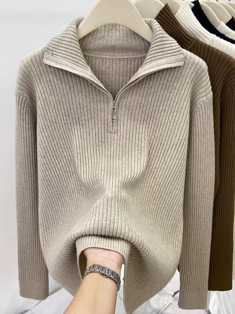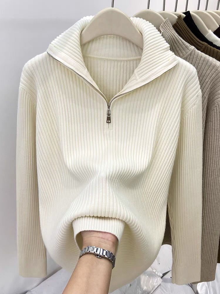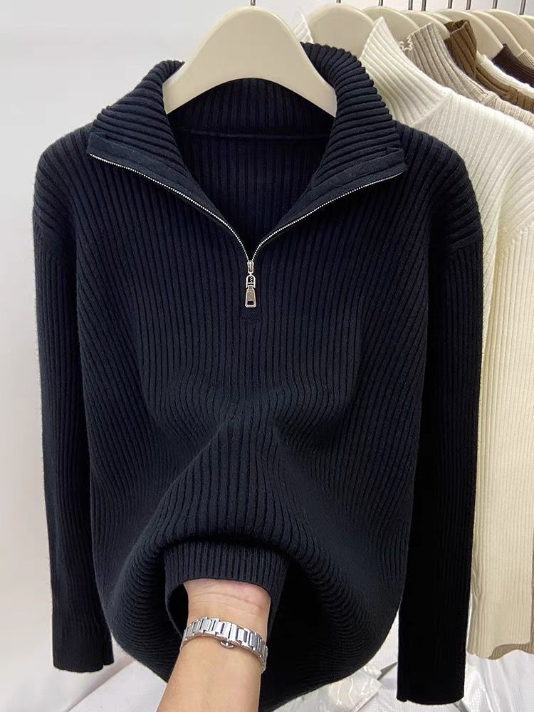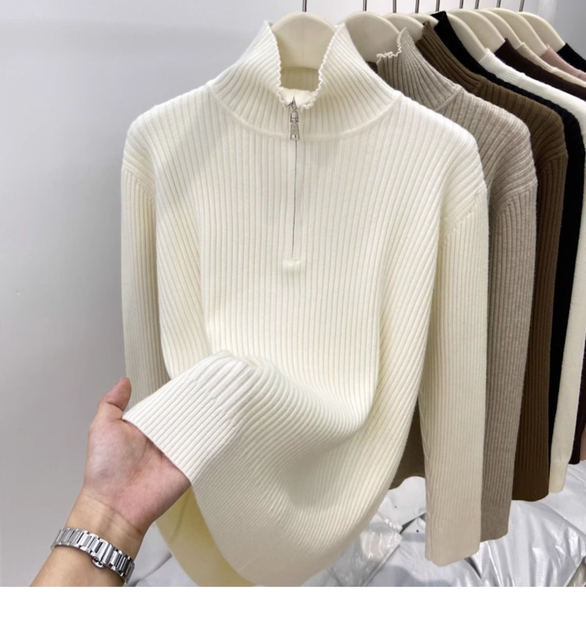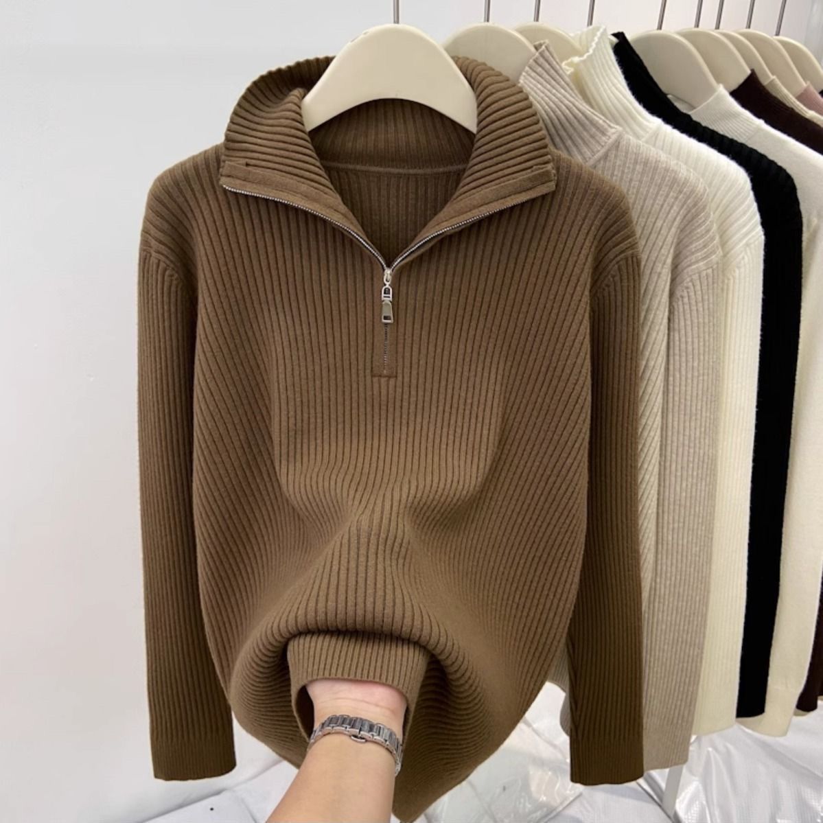 [40.00 kg-100.00 kg] 가을과 겨울 지퍼 터틀넥 스웨터 여성베이스 셔츠 풀오버 두꺼운 느슨한 한국 외국식 탑