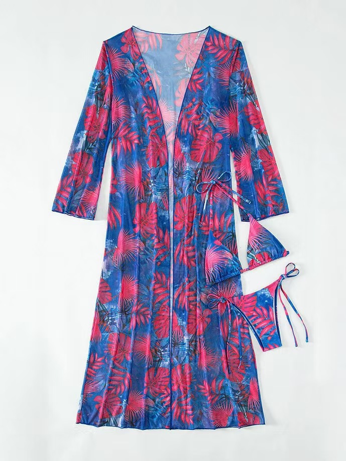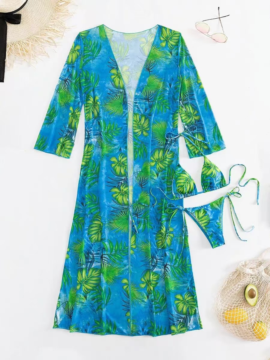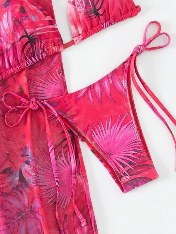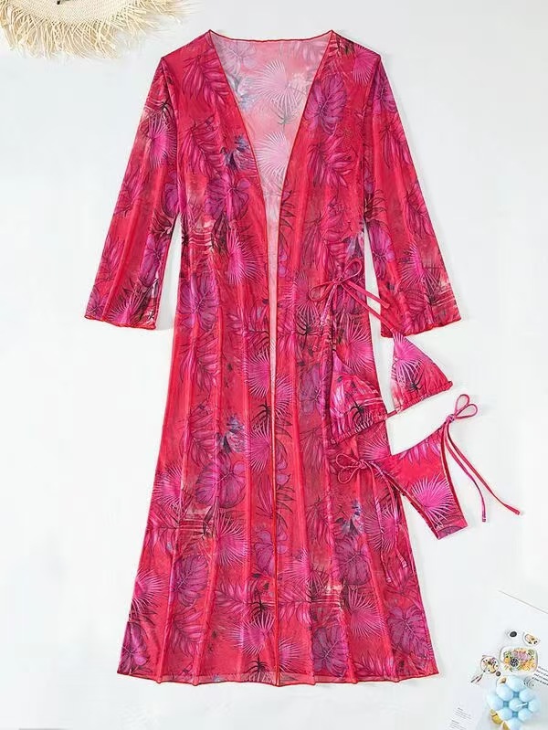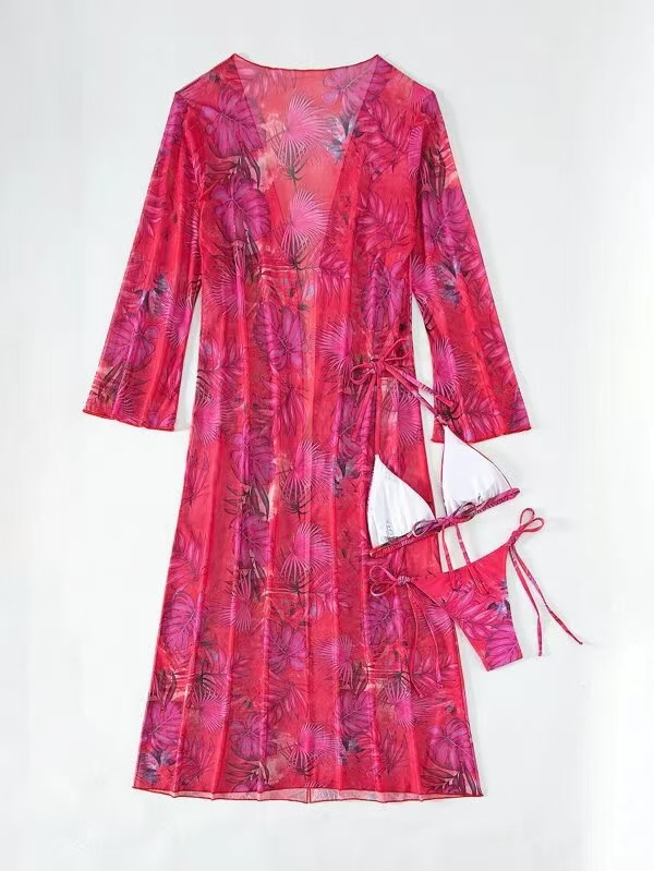 유럽과 미국의 새로운 대외 무역 수영복 여성용 스플릿 3 피스 세트 긴 소매 섹시한 스트랩 비키니 국경 간 인쇄 폭발스토어 가기