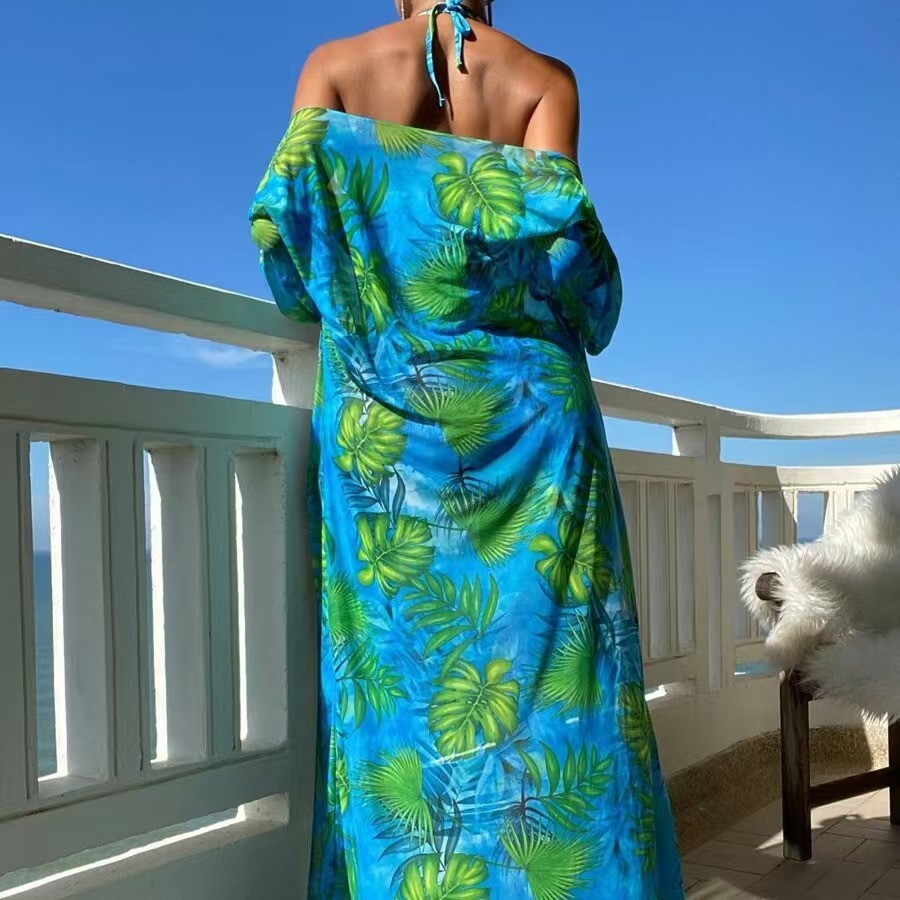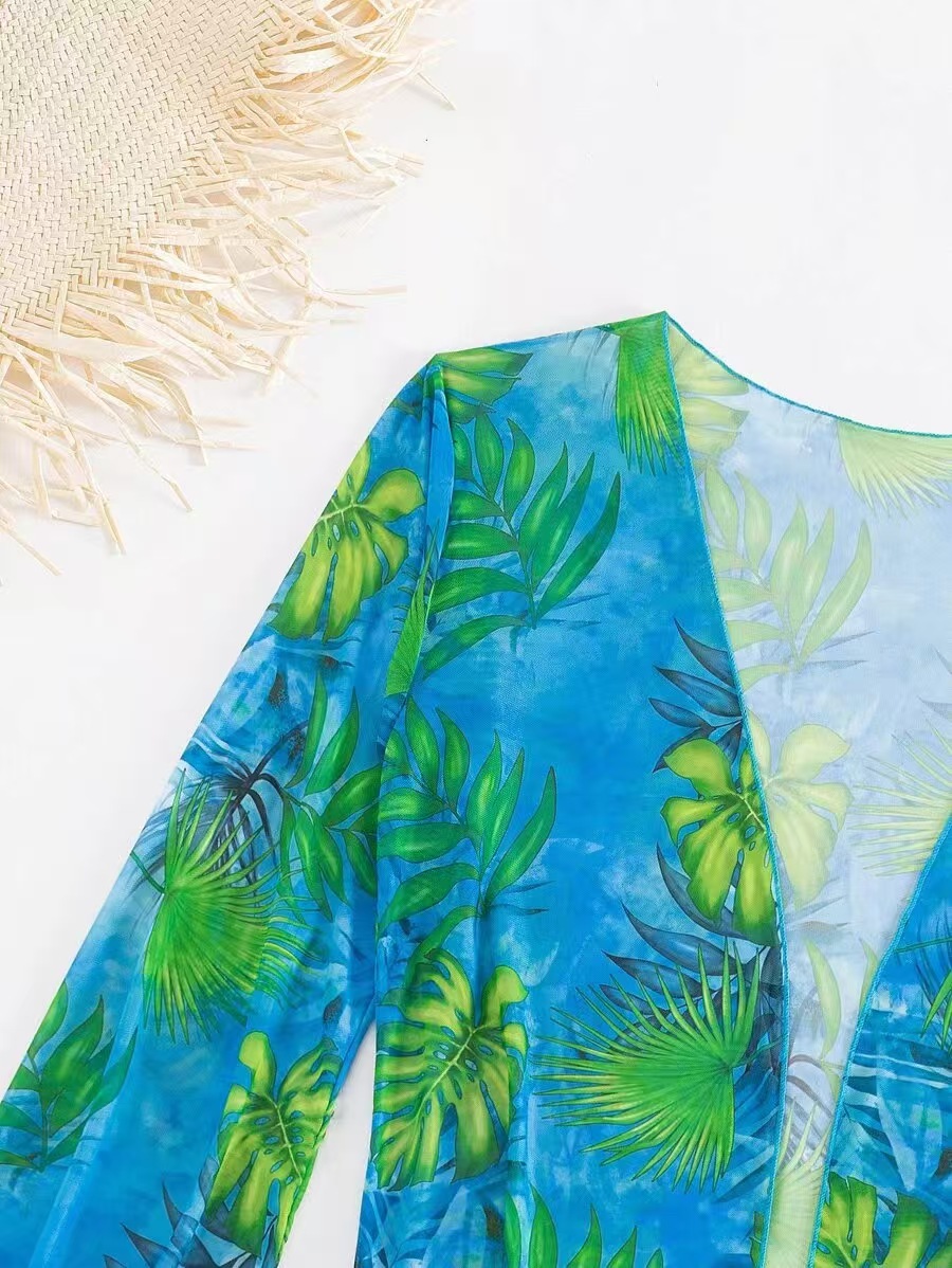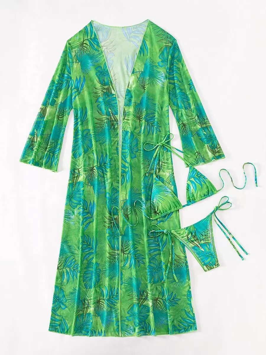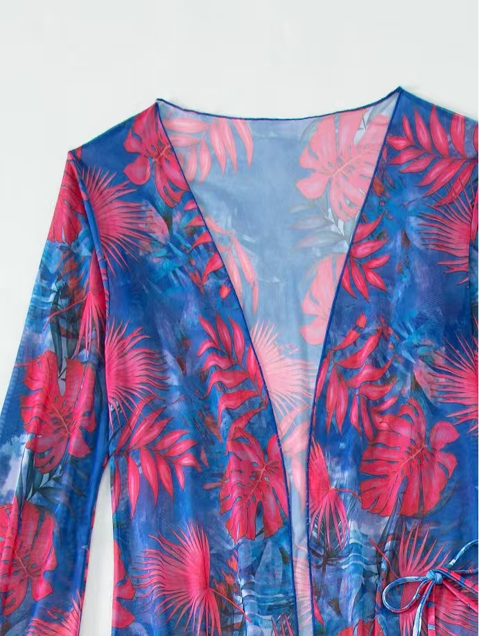 유럽과 미국의 새로운 대외 무역 수영복 여성용 스플릿 3 피스 세트 긴 소매 섹시한 스트랩 비키니 국경 간 인쇄 폭발스토어 가기