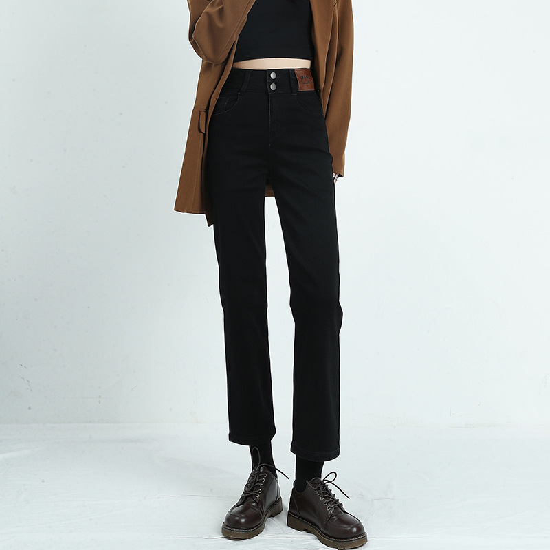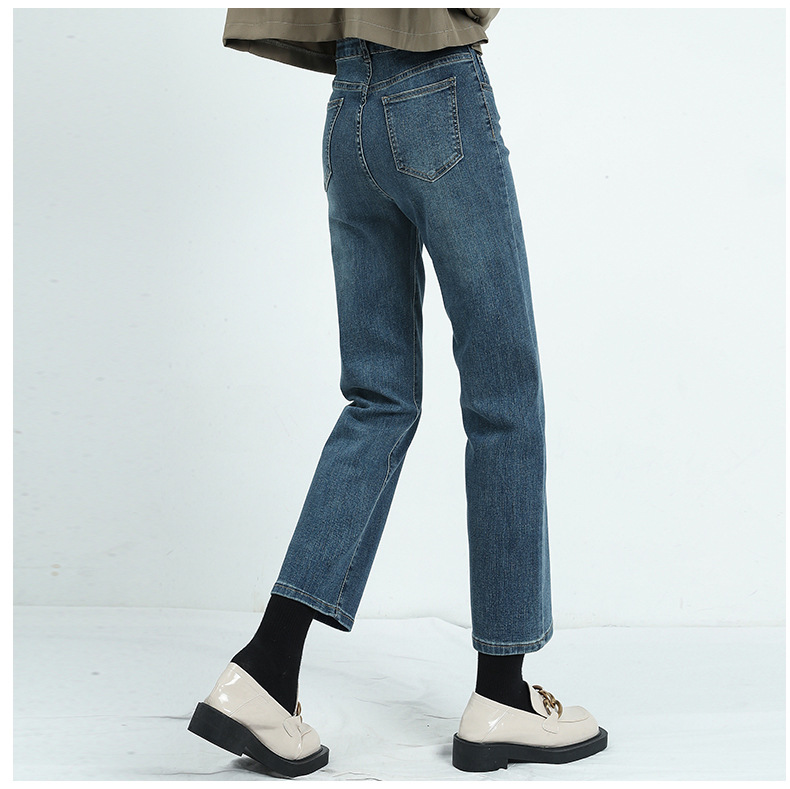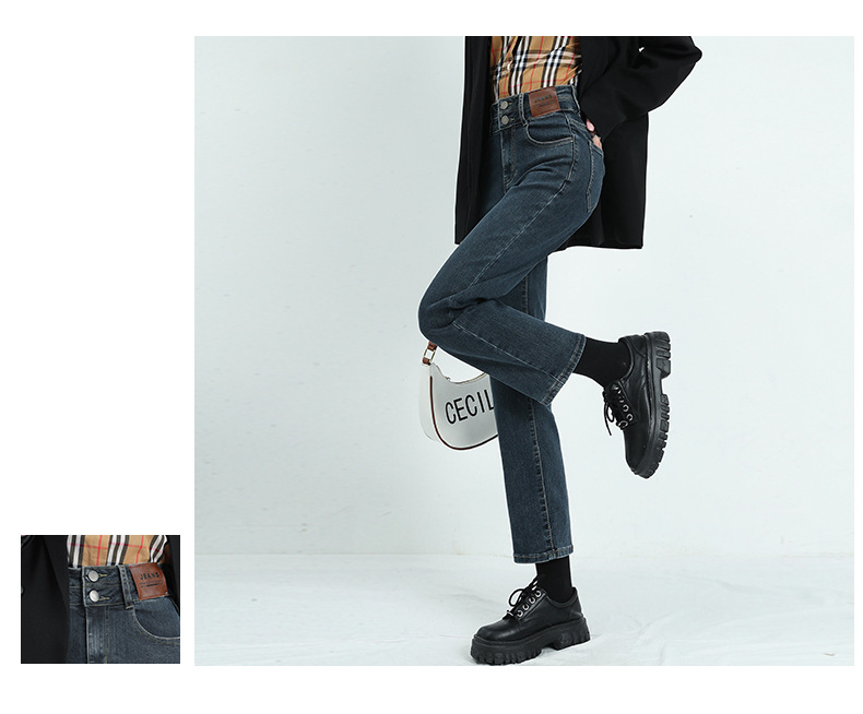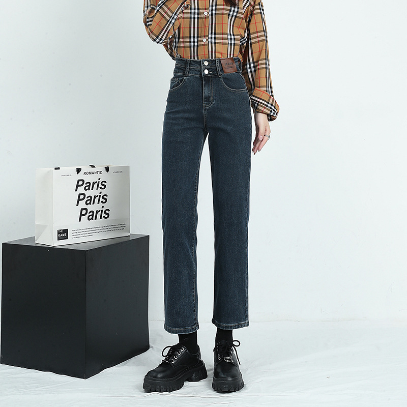 연기 파이프 바지 스트레이트 바지 청바지 여성 봄과 가을 2025 새로운 스타일 작은 높은 허리 바게트 바지 바지 가을 및 겨울스토어 가기