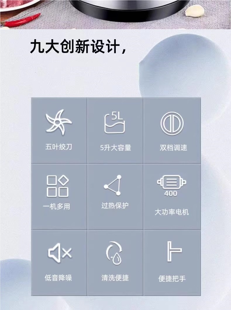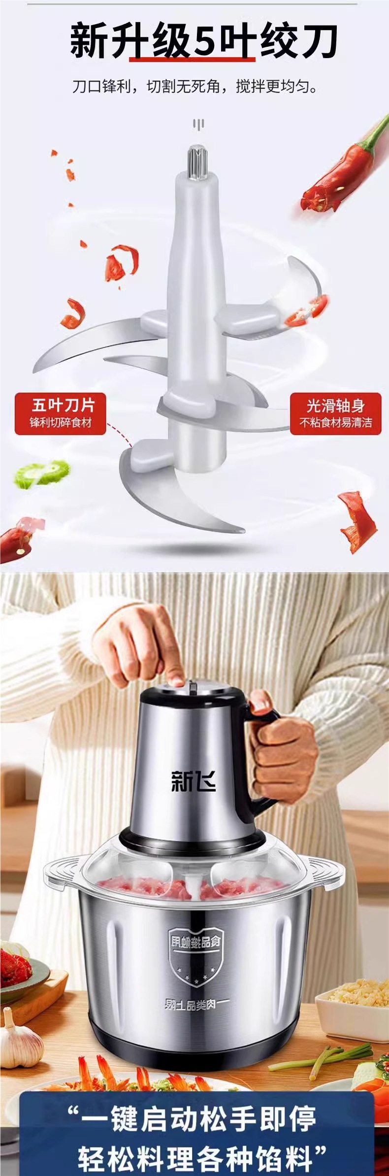 가정용 고기 분쇄기 자동 대용량 보조 식품 기계 다기능 전기 다진 고기 및 야채 다진 작은 요리 기계