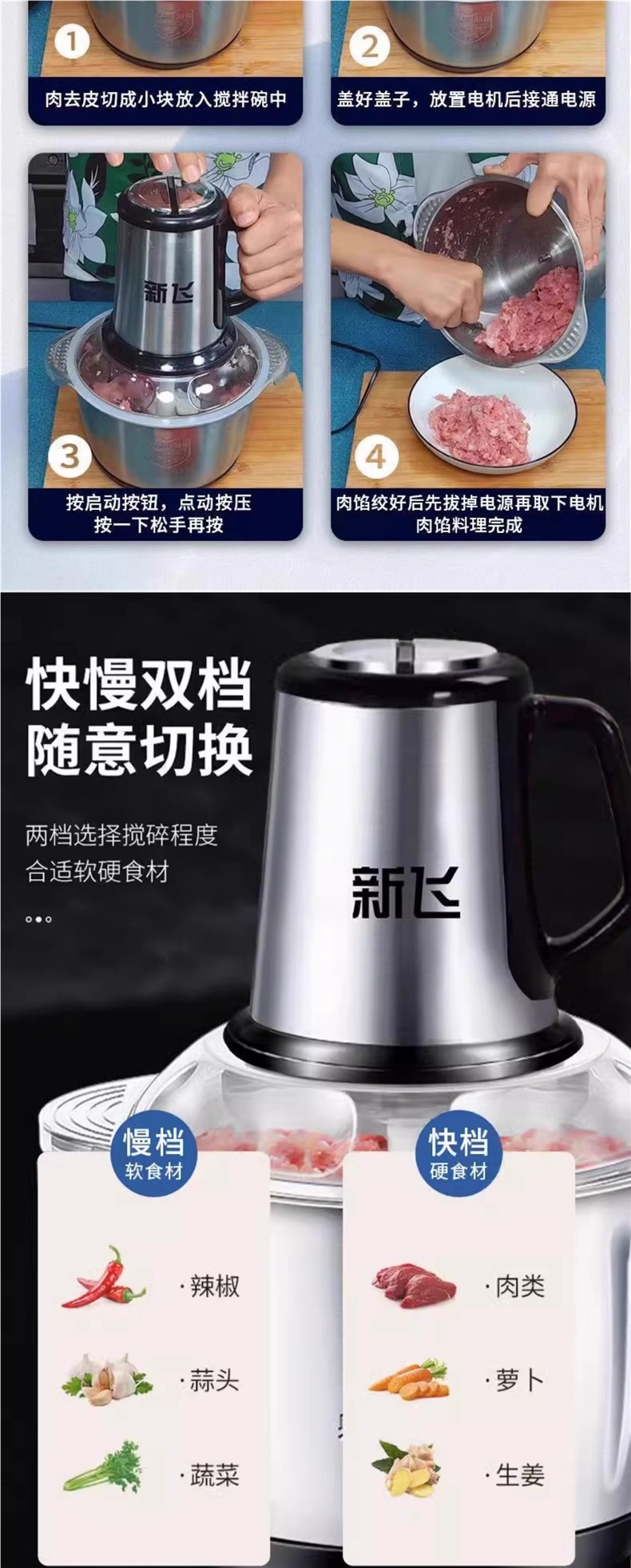 가정용 고기 분쇄기 자동 대용량 보조 식품 기계 다기능 전기 다진 고기 및 야채 다진 작은 요리 기계스토어 가기