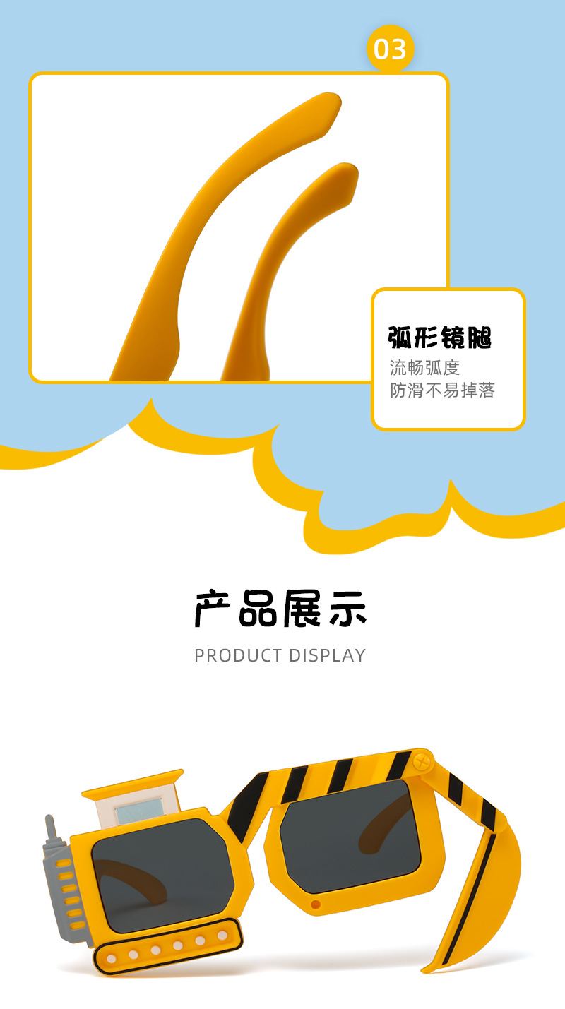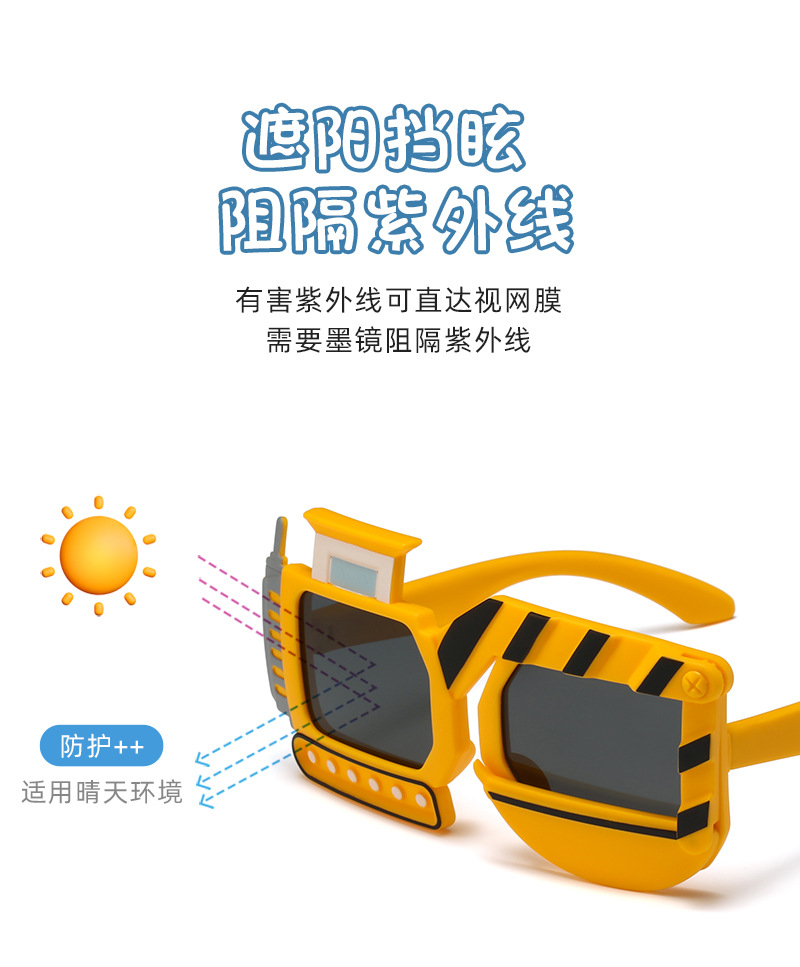 새로운 패션 성격 실리콘 어린이 HD 편광 선글라스 높은 감각 어린 아이 같은 굴삭기 선글라스 도매 여성스토어 가기