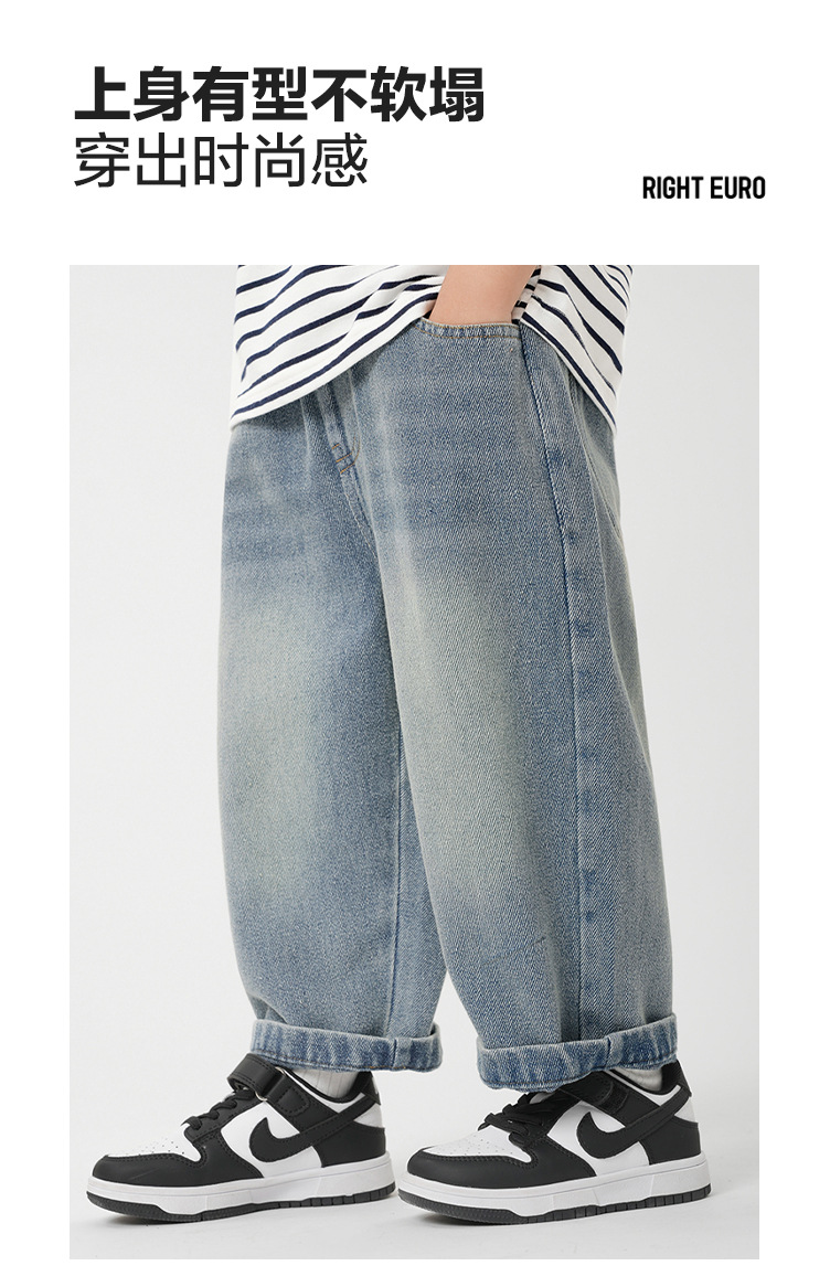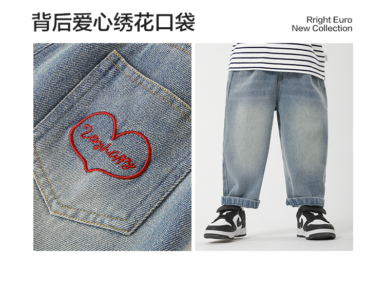 오른쪽 유럽 소년 청바지 가을 캐주얼 긴 바지 봄, 가을 아동 의류 아동 아기 소년 가을 트렌드