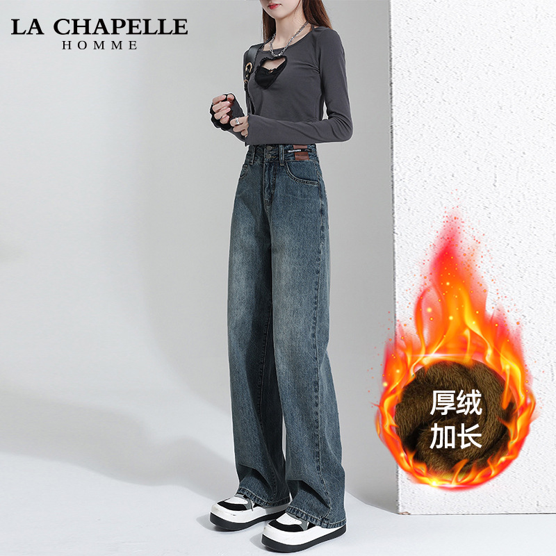 스트레이트 레그 와이드 레그 청바지 여자 가을 겨울 2024 유행 올매치 새로운 폭발성 작은 기모 높은 허리 느슨한 바지