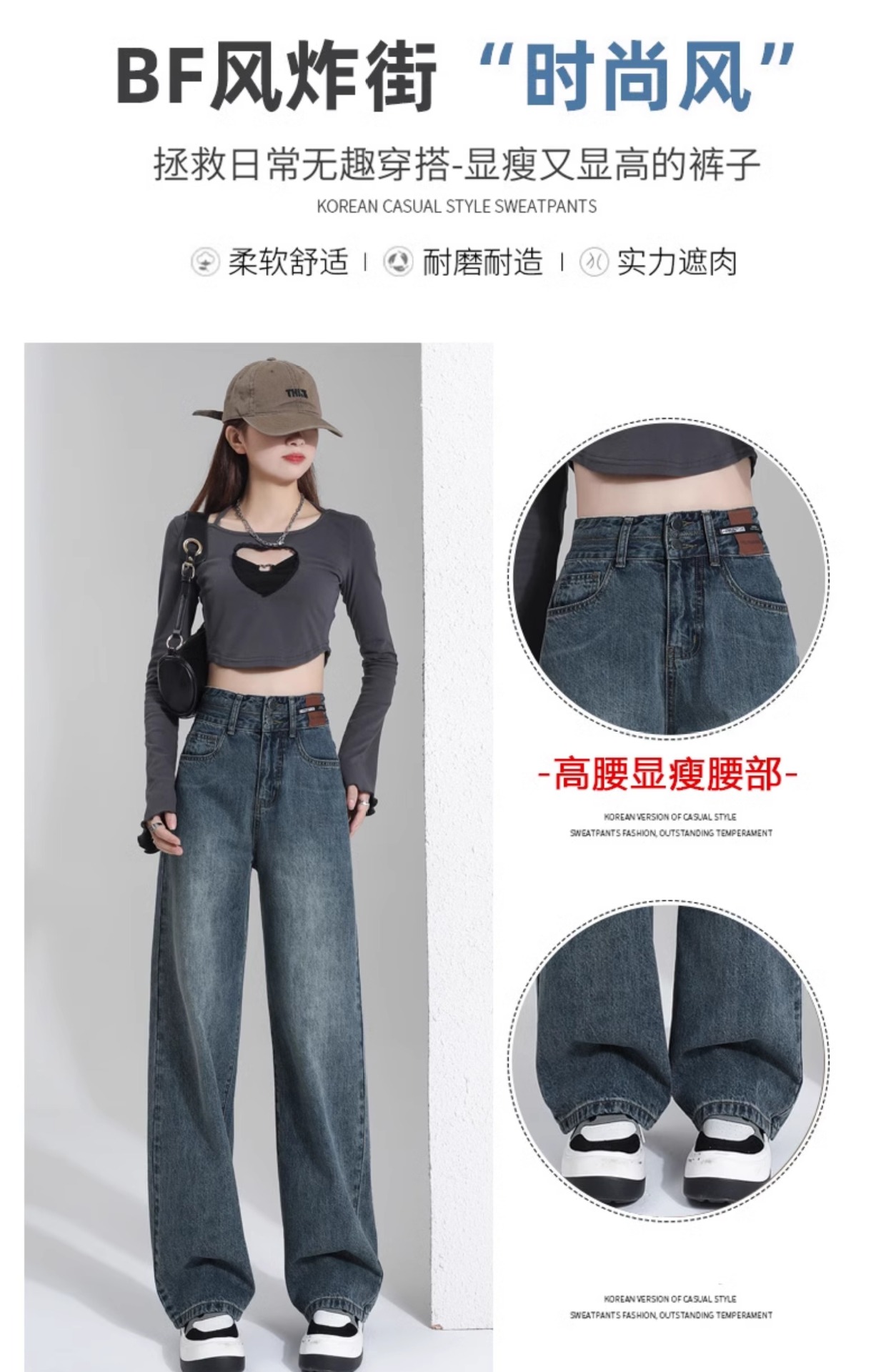 스트레이트 레그 와이드 레그 청바지 여자 가을 겨울 2024 유행 올매치 새로운 폭발성 작은 기모 높은 허리 느슨한 바지스토어 가기