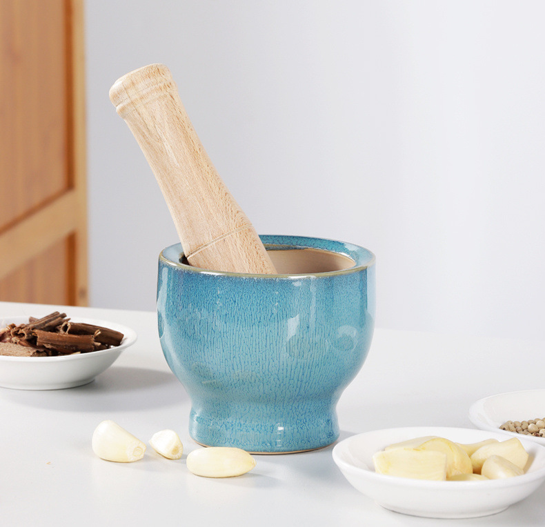 그릇의 판매를 대신하여 마늘 가정용 제품 식품 분쇄기 마늘을 두드리는 구식 마늘 박격포 세라믹 수동 새로운
