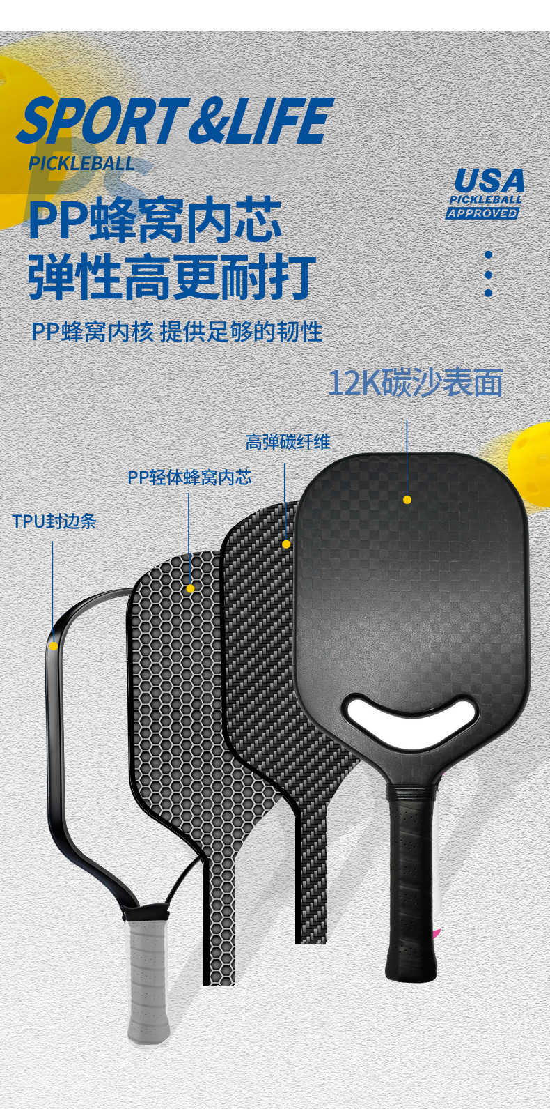 고강도 탄소섬유 피클볼 라켓, 탄소섬유 열압착 일체형 라켓, 프레임리스 무광택 표면, 공장 직영 무광택 질감스토어 가기