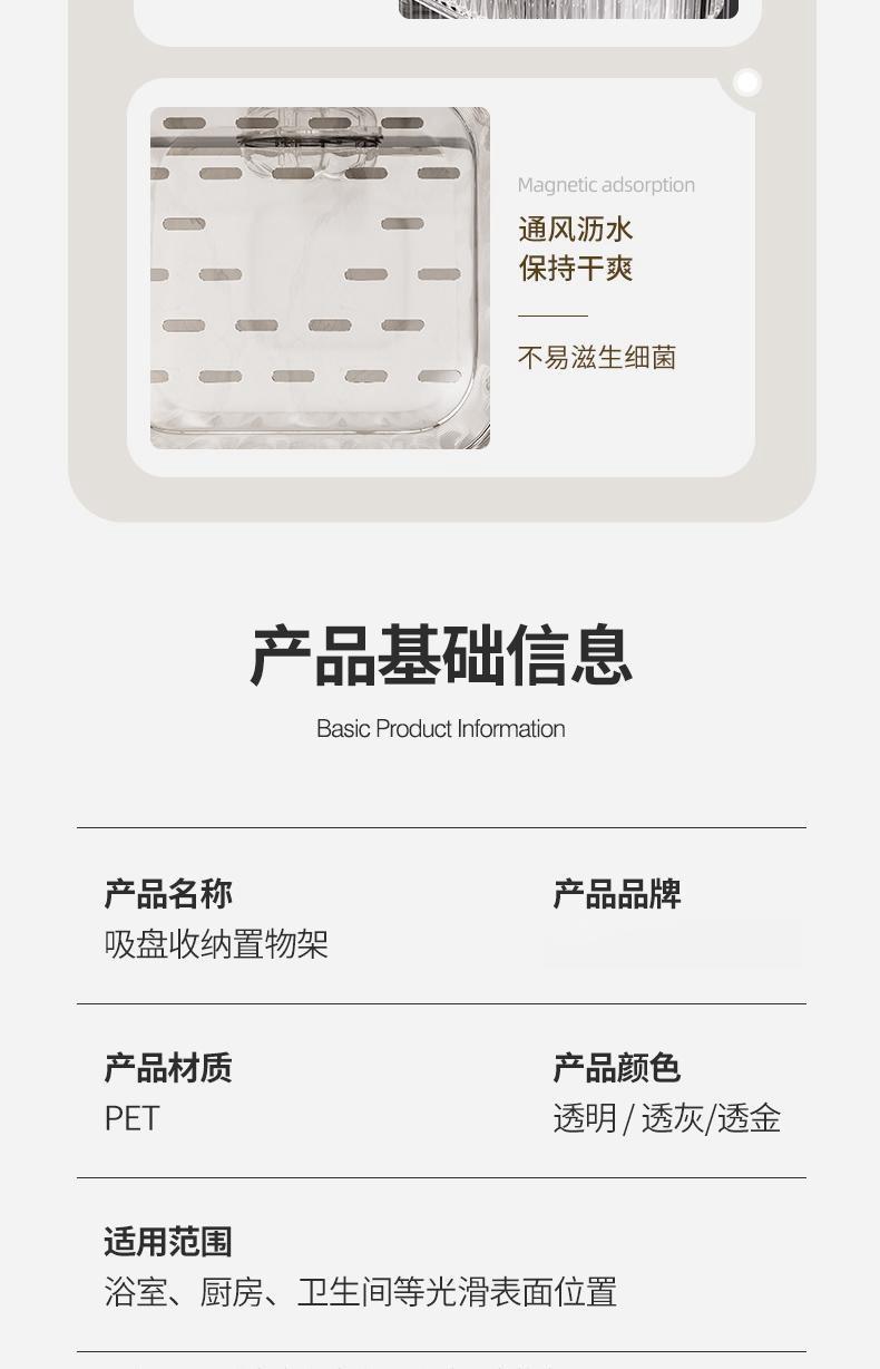 • [업그레이드 및 두꺼워짐] 흡착컵 수납선반 - 투명 그레이