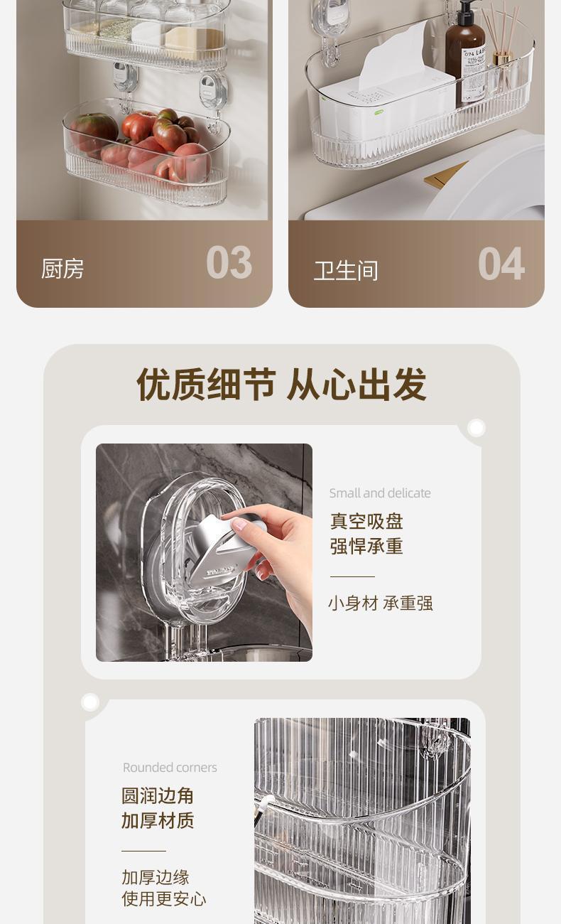 • [업그레이드 및 두꺼워짐] 흡착컵 수납선반 - 투명 흰색